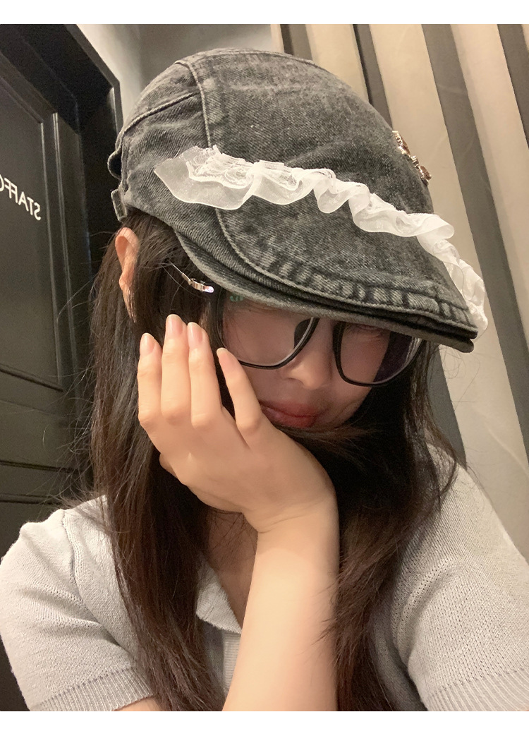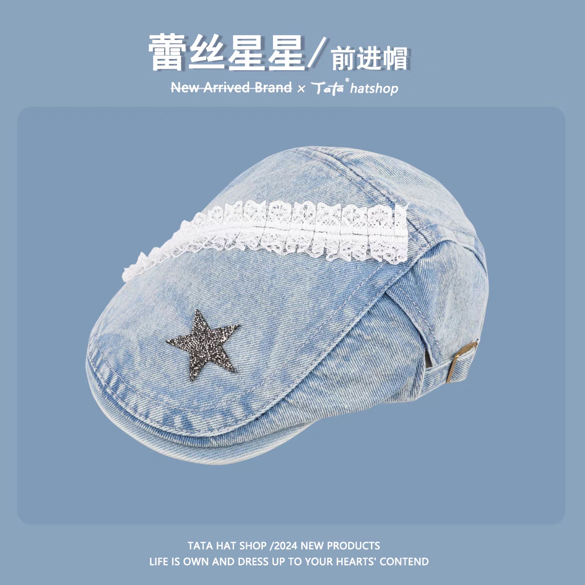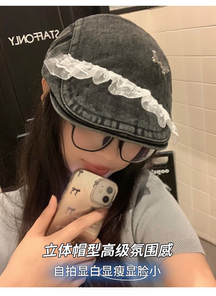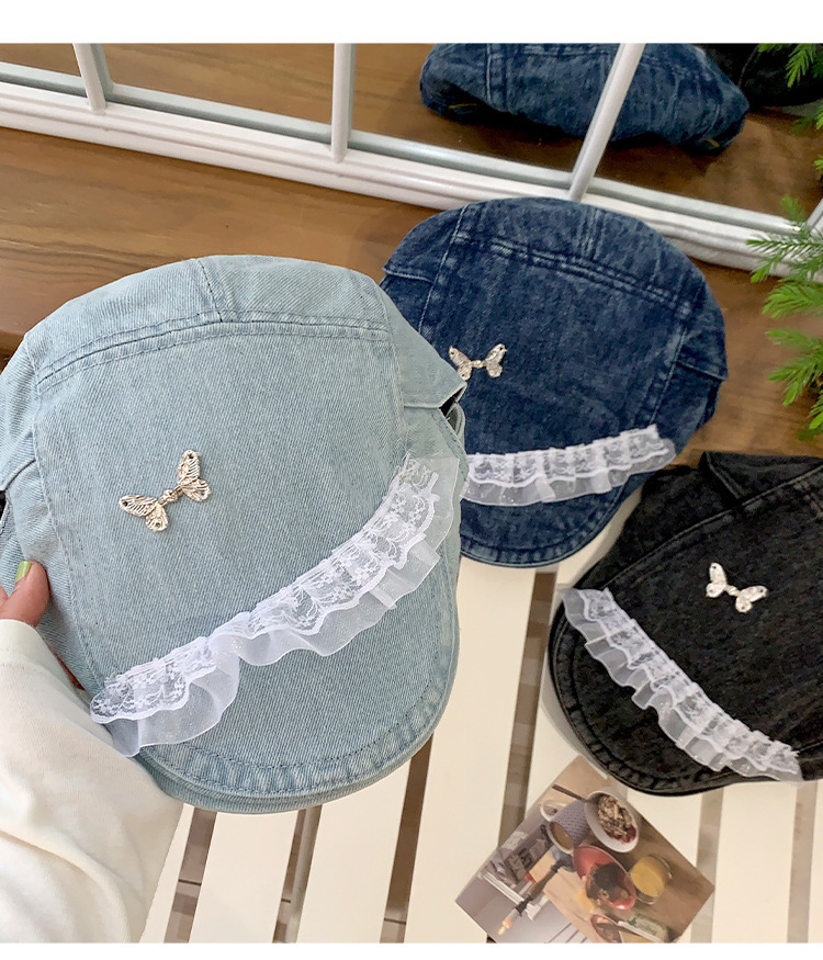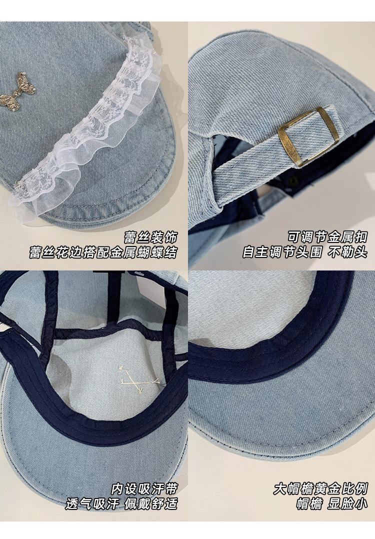 여름 올 매치 일본 스타일 빈티지 활 레이스 데님 포워드 모자 여성의 얼굴 작은 곡선 처마 오리 혀 베일리 모자