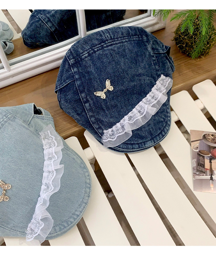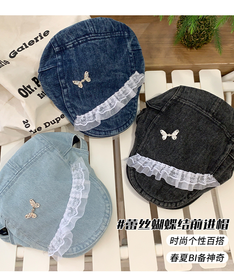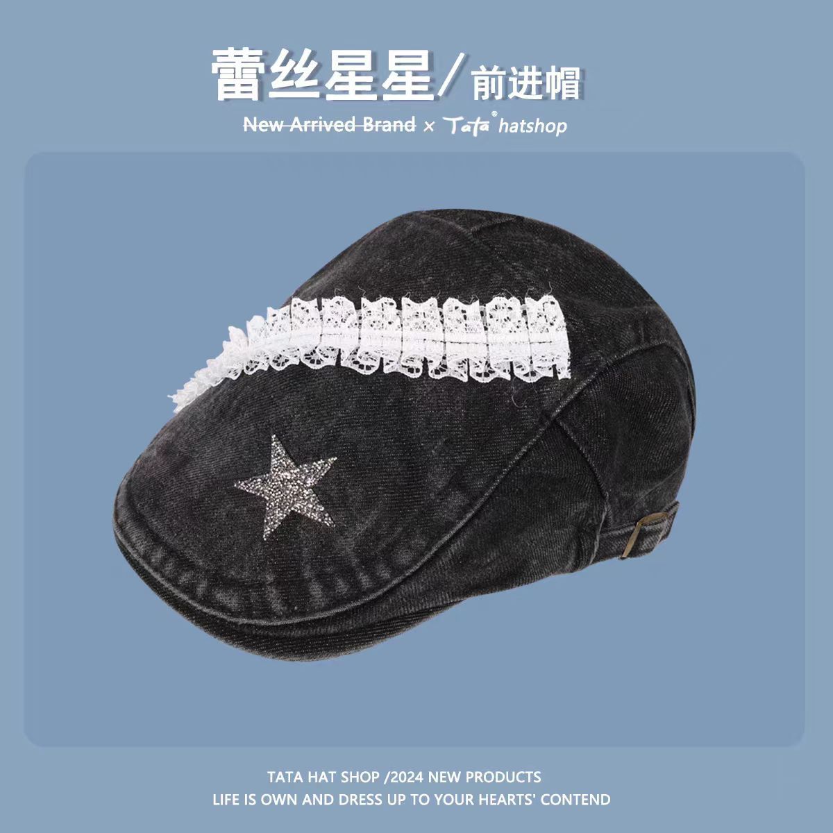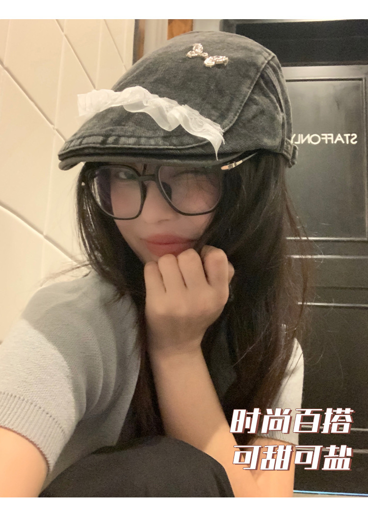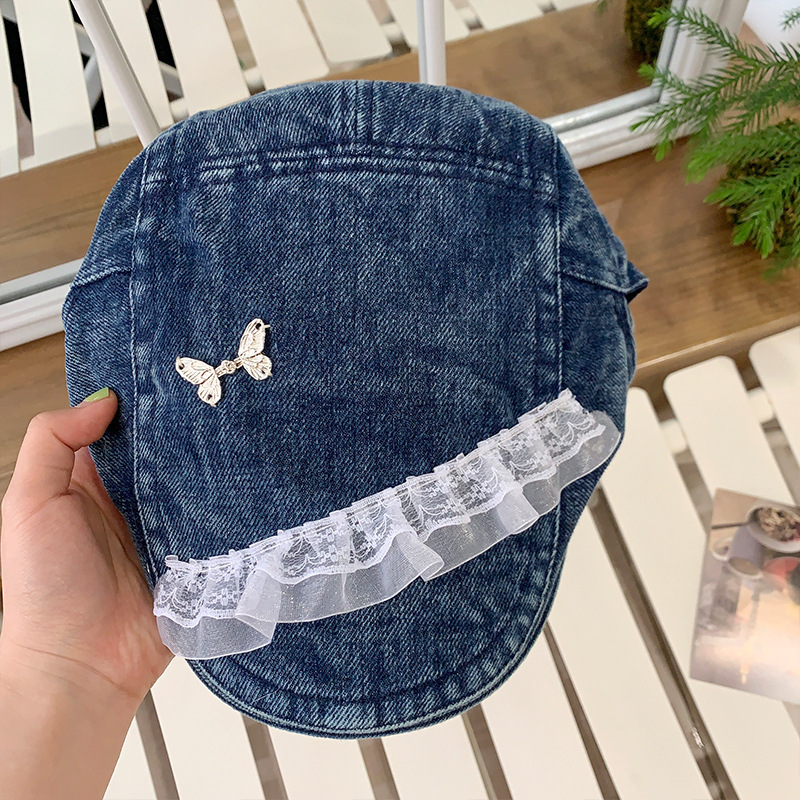 여름 올 매치 일본 스타일 빈티지 활 레이스 데님 포워드 모자 여성의 얼굴 작은 곡선 처마 오리 혀 베일리 모자