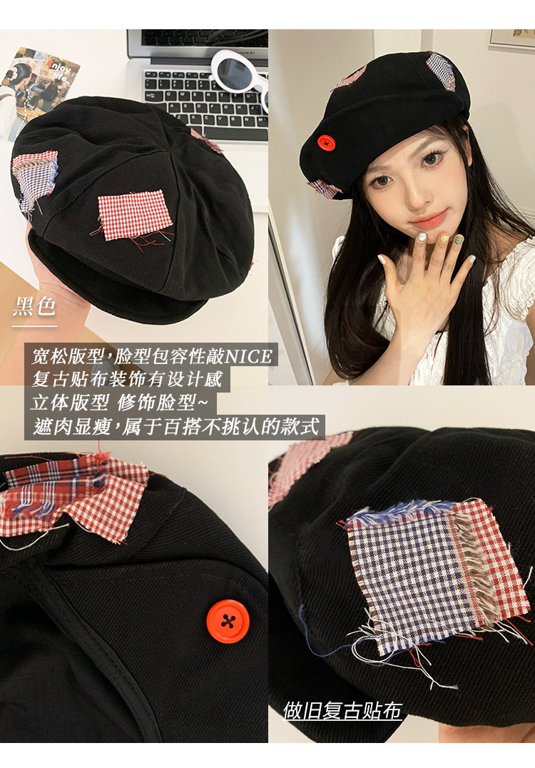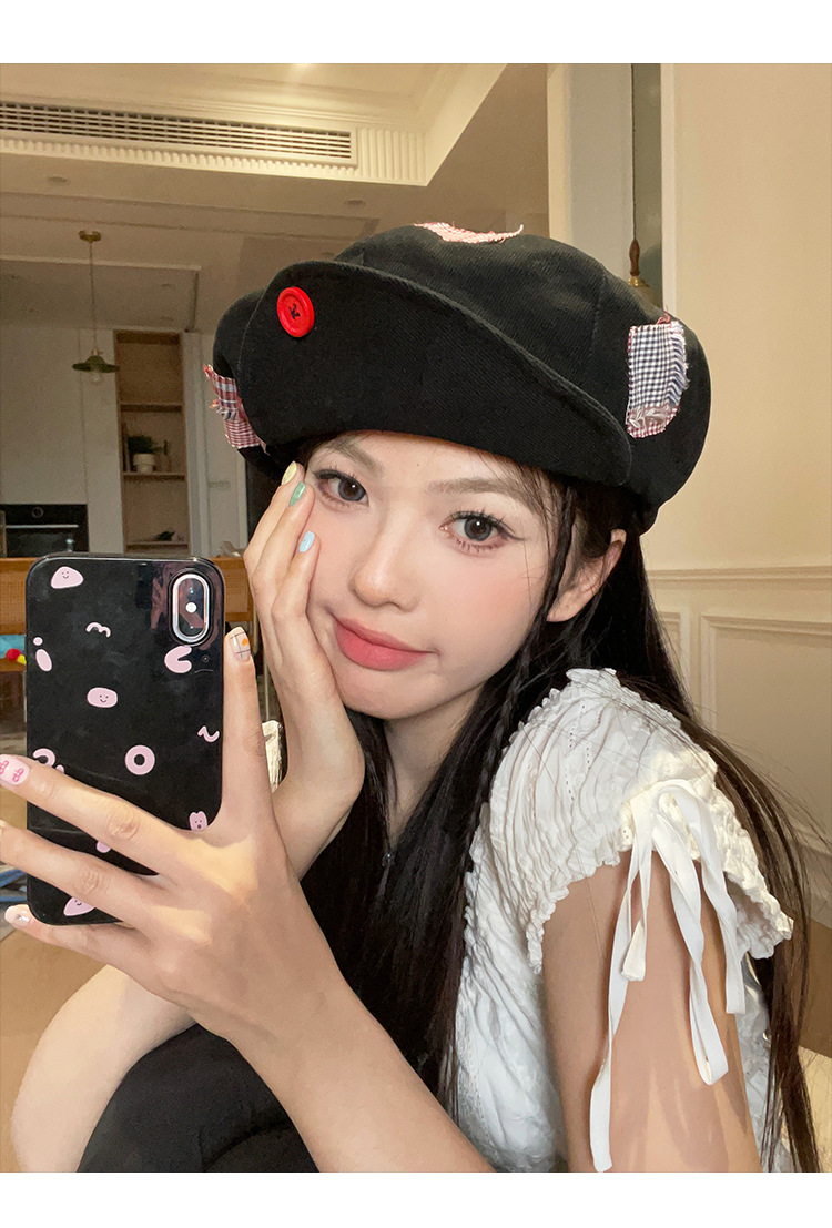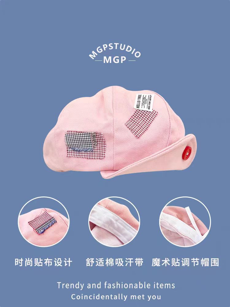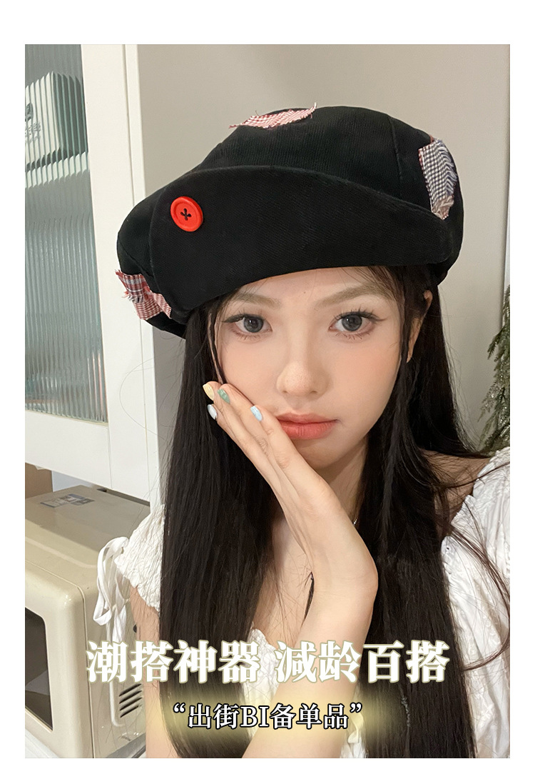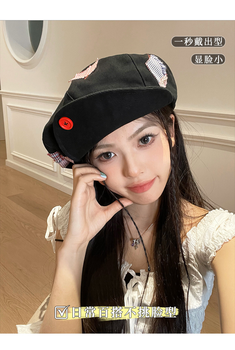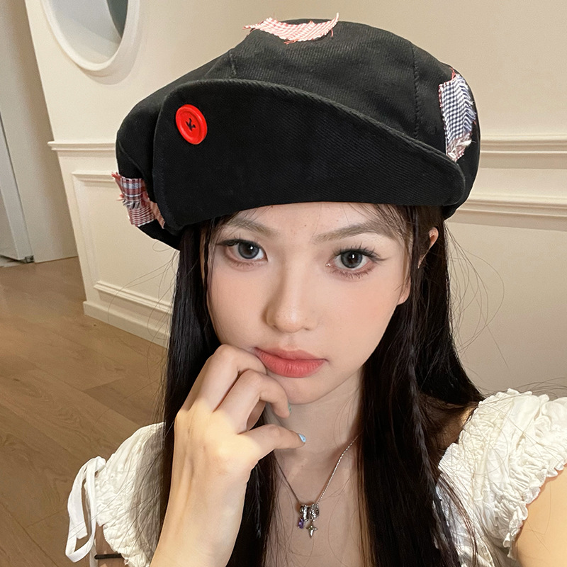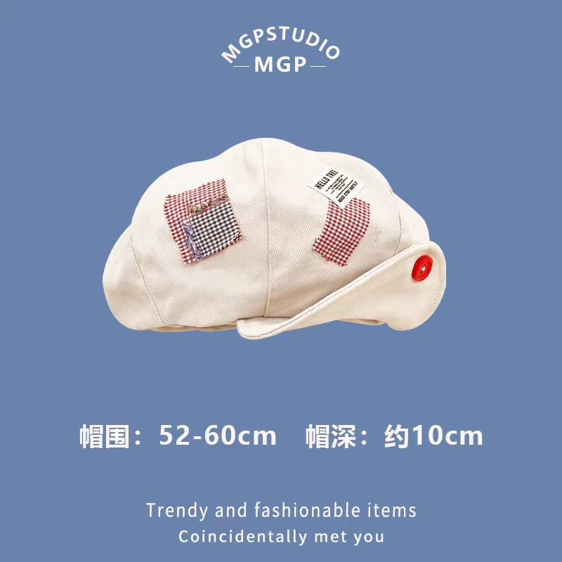 한국 스타일 구름 베레 여성의 여름 2024 새로운 큰 머리 둘레 얼굴 작은 색 버튼 팔각형 화가의 모자스토어 가기