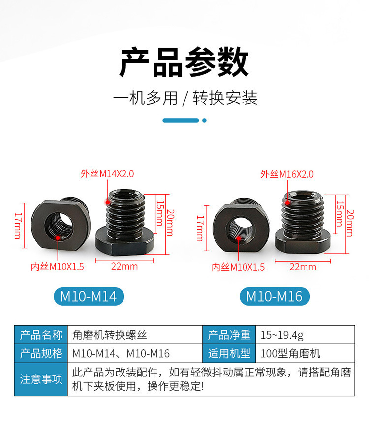 100 형 앵글 그라인더 수정 어댑터 M10 ~ M14 외부 치아 M16 스레드 변환 연마 기계 액세서리