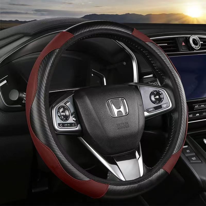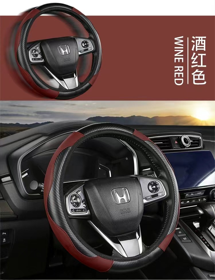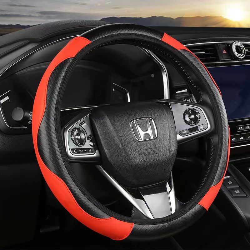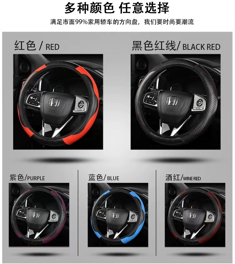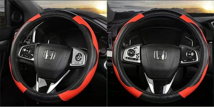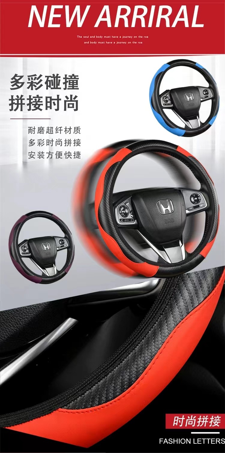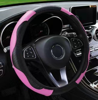 스티어링 휠 커버 크로스보더 신차 비즈니스 탄소 섬유 스포츠 스타일 내부 링 없음 탄성 밴드 탄성 가죽 핸들 커버스토어 가기
