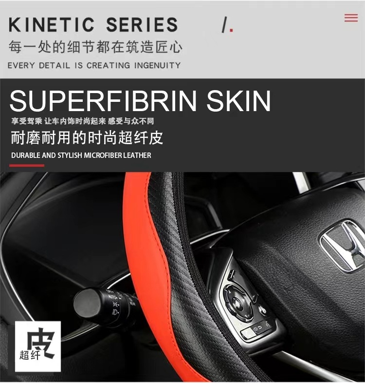 스티어링 휠 커버 크로스보더 신차 비즈니스 탄소 섬유 스포츠 스타일 내부 링 없음 탄성 밴드 탄성 가죽 핸들 커버
