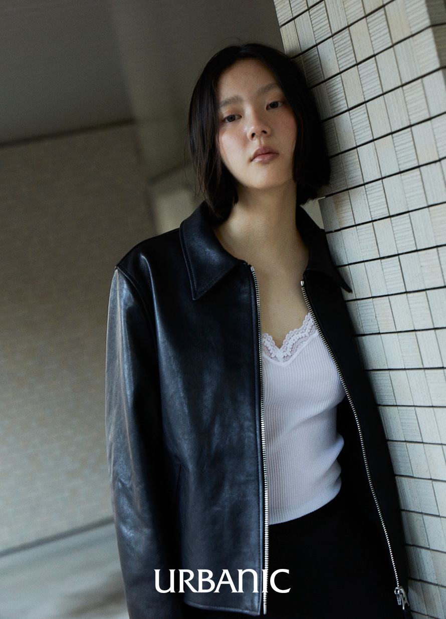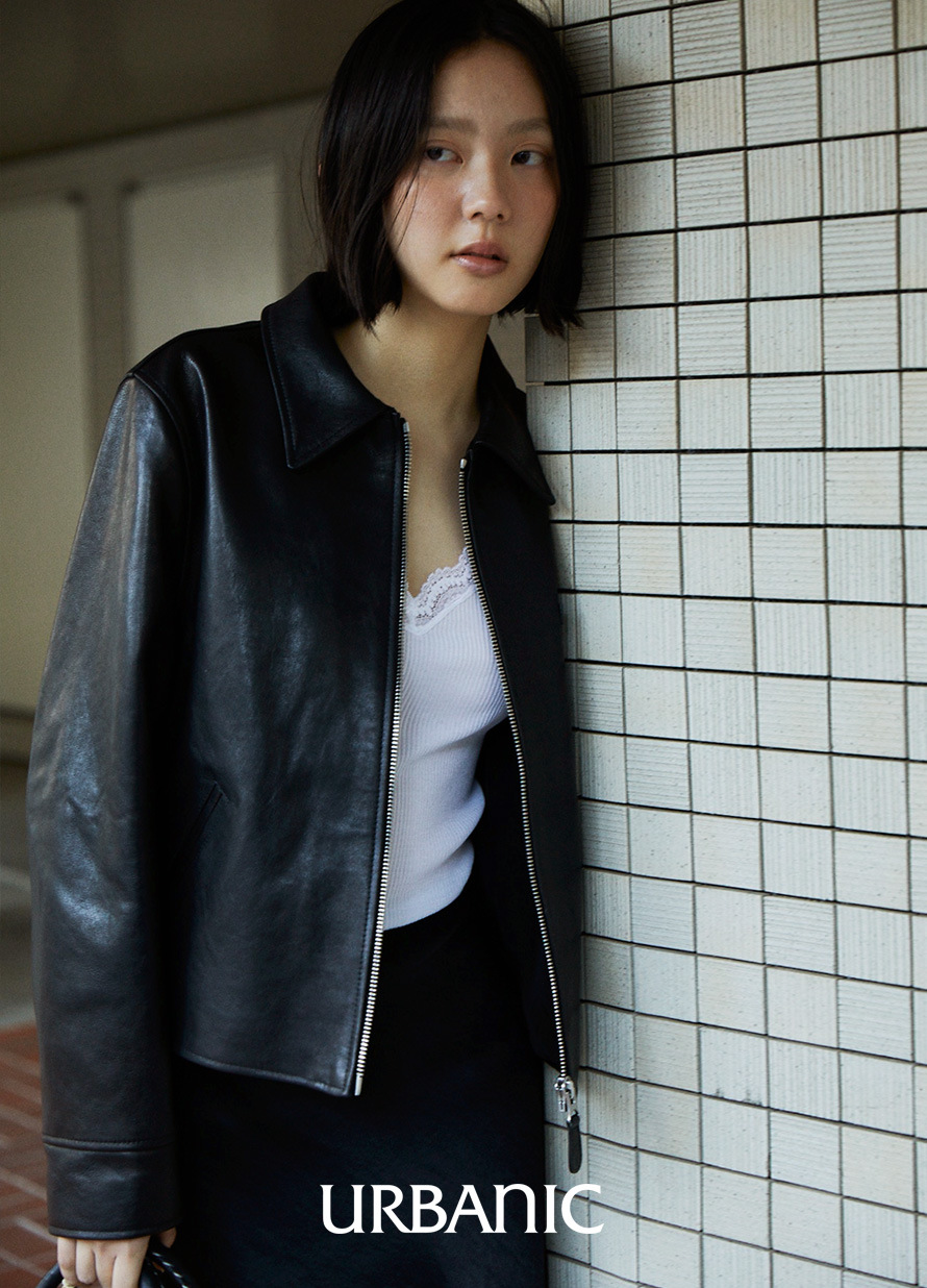 재고 urbanic30 포춘 하우스 여성용 가죽 24 새로운 간단한 옷깃 단색 레트로 짧은 재킷