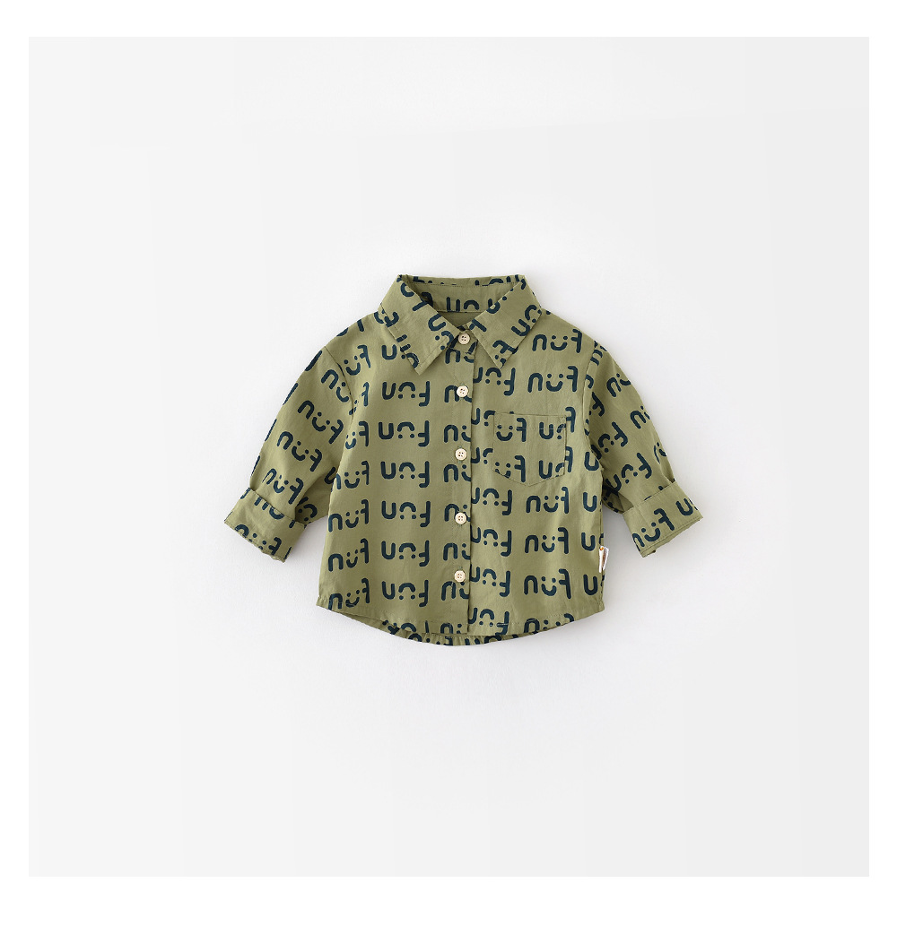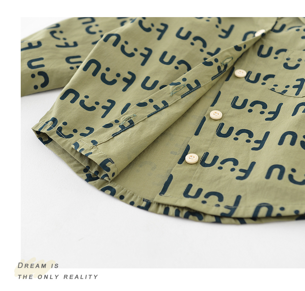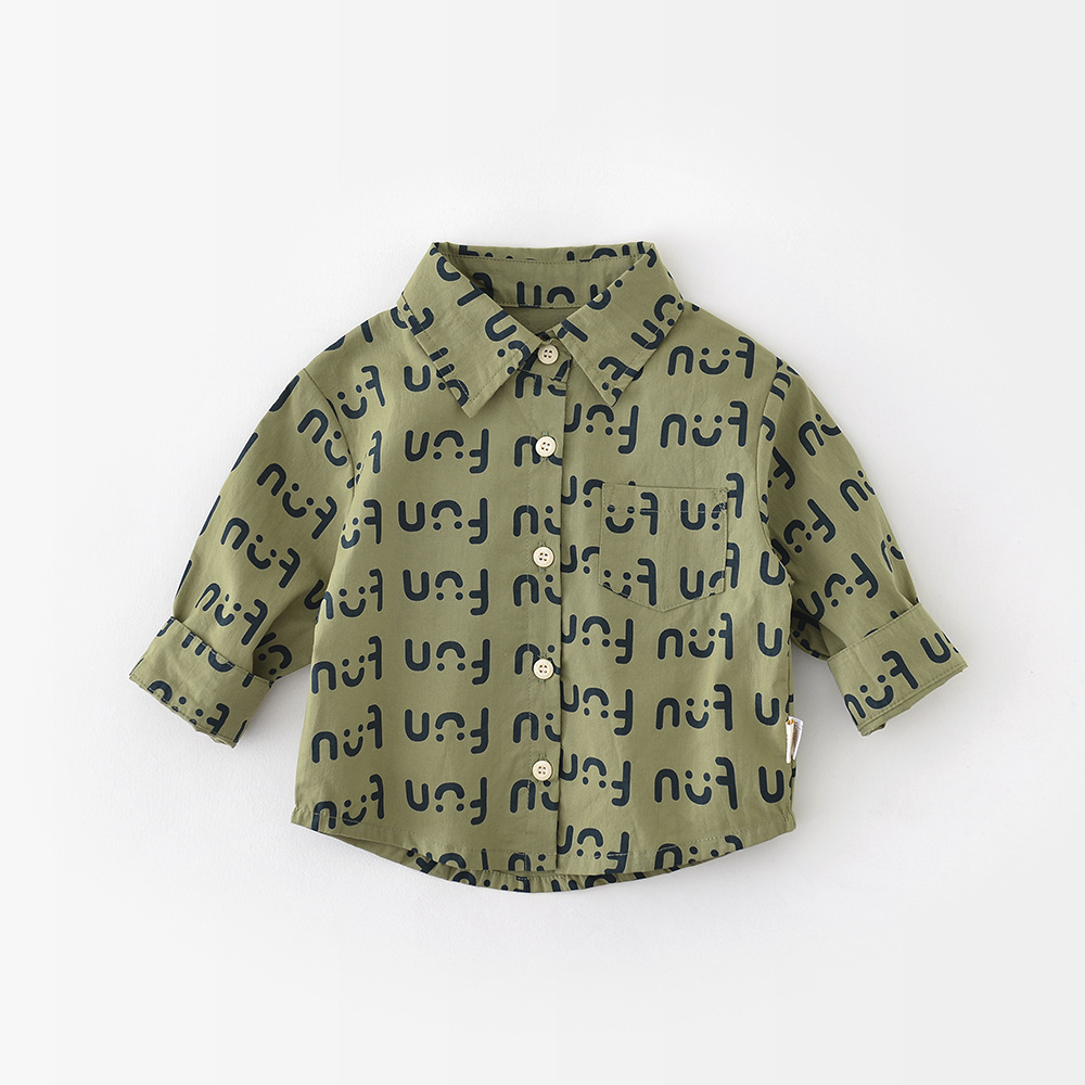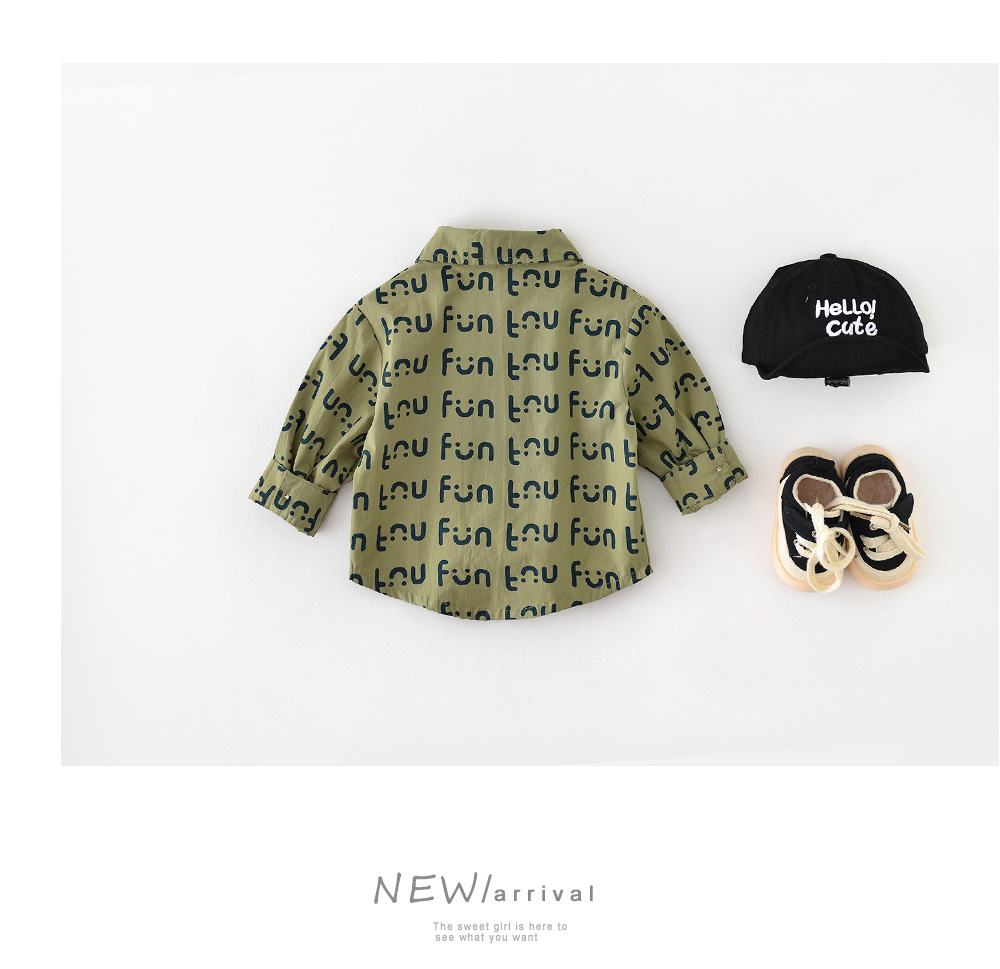 유아 가을 셔츠 소년의 전체 인쇄 편지 스마일리 긴 소매 어린이 아웃 패션 캐주얼 톱 93010