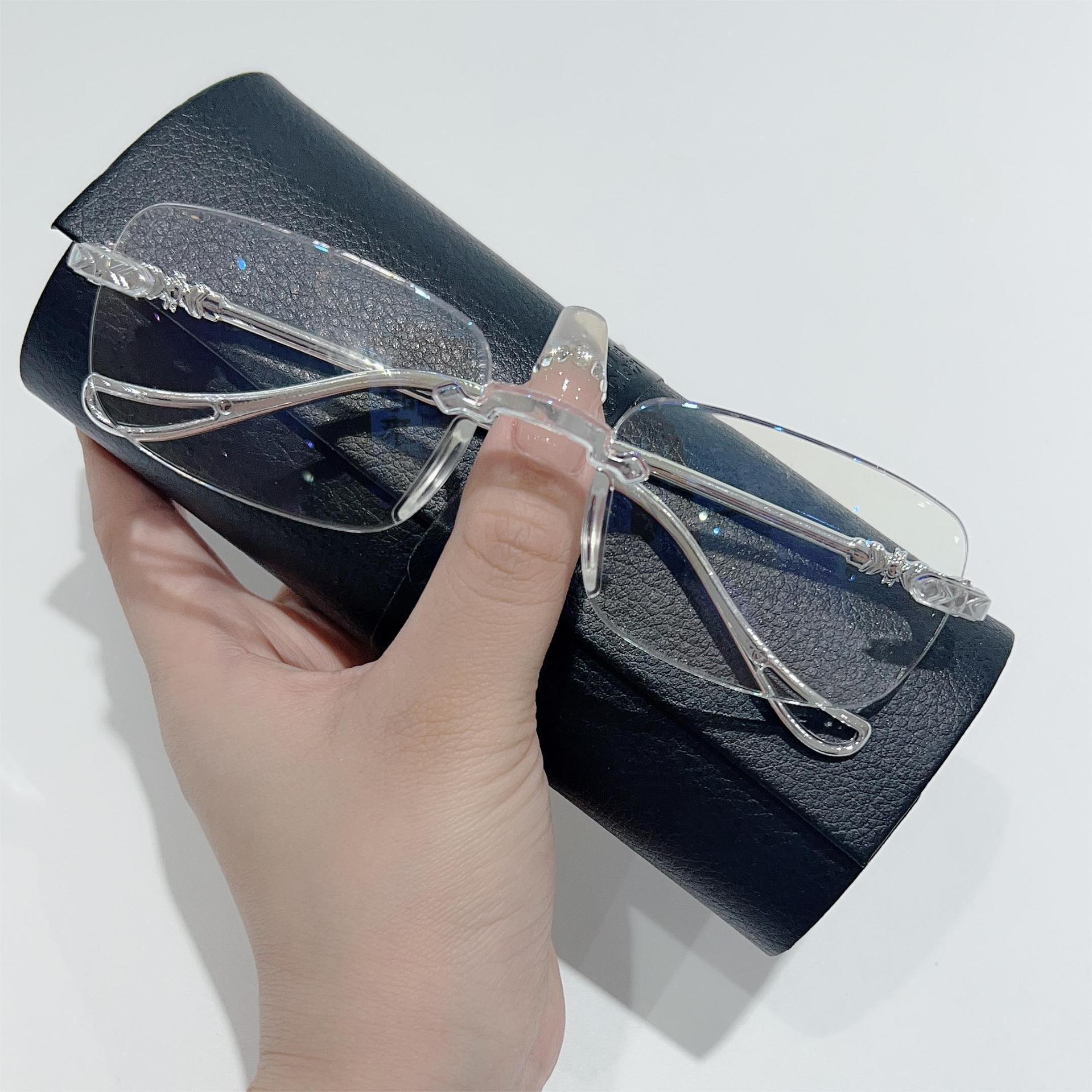 하이 엔드 프레임리스 독서 안경 남성용 초경량 패션 안티 블루 라이트 안티 방사선 HD 중년 노광 노안 안경 여성스토어 가기