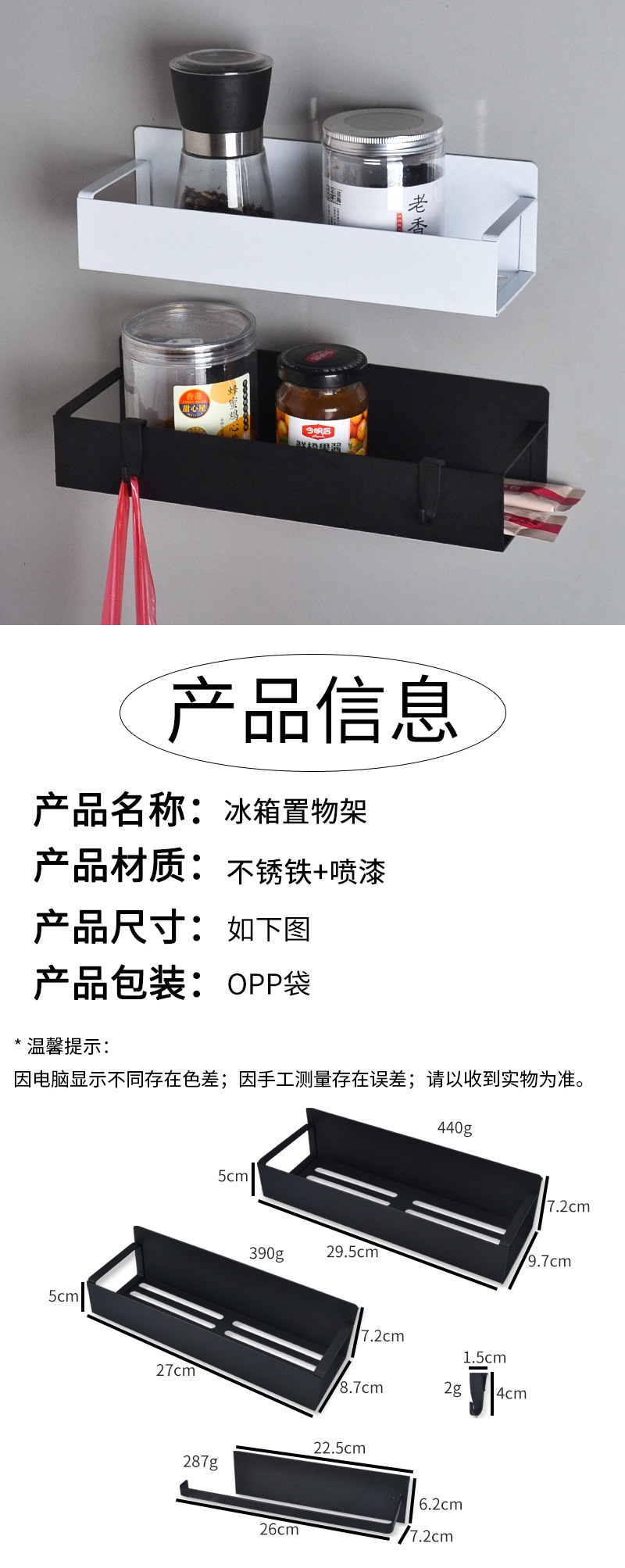 국경 간 자기 흡수 냉장고 저장 랙 비 천공 매운 랙 냉장고 사이드 랙 주방 용품 보관 랙 마무리