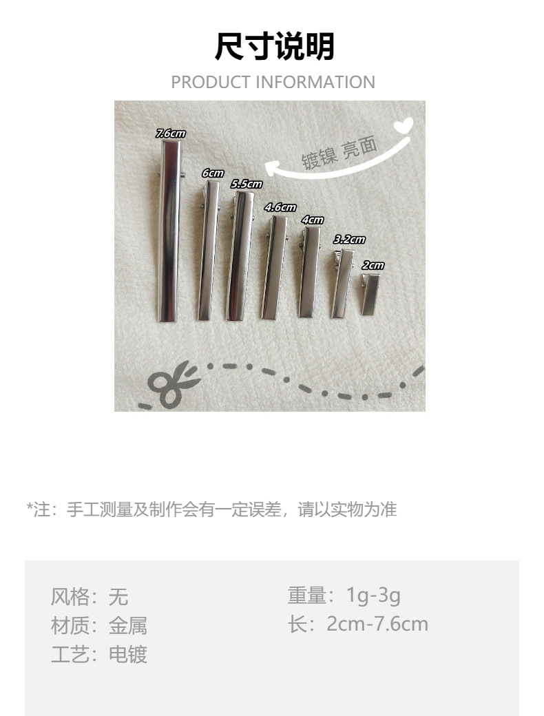 실버 사각 오리 지폐 클립 DIY 머리 장식 소재 전기 도금 밝은 얼굴 달콤한 멋진 머리핀 활 하단 클립 헤어 액세서리