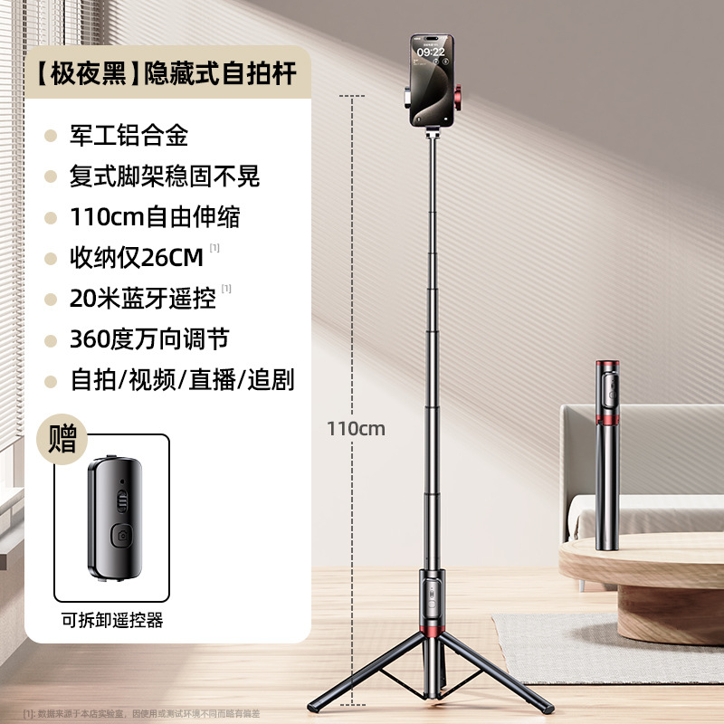 • 익스트림 나이트 블랙 [원피스 숨겨진 스토리지] 특수 안정적인 알루미늄 합금 * 범용 원격 컨트롤러 * 휴대용 바닥 삼각대