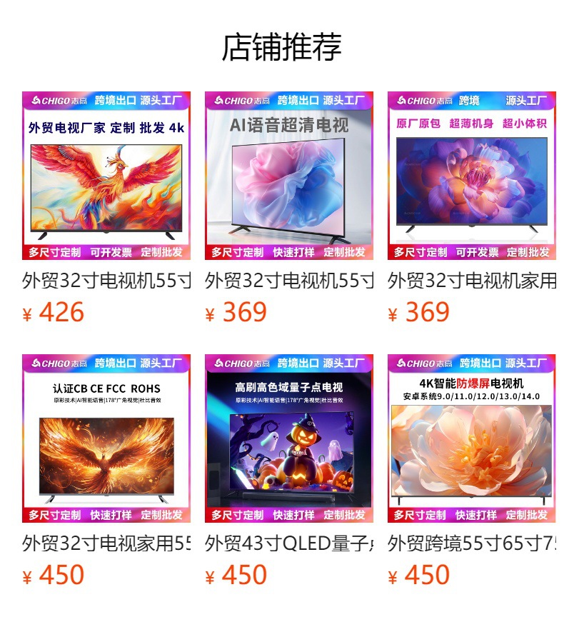 대외 무역 32 인치 스마트 TV 55 인치 HD LCD TV 65 인치 스마트 tv75 인치 초박형 LCD 화면스토어 가기