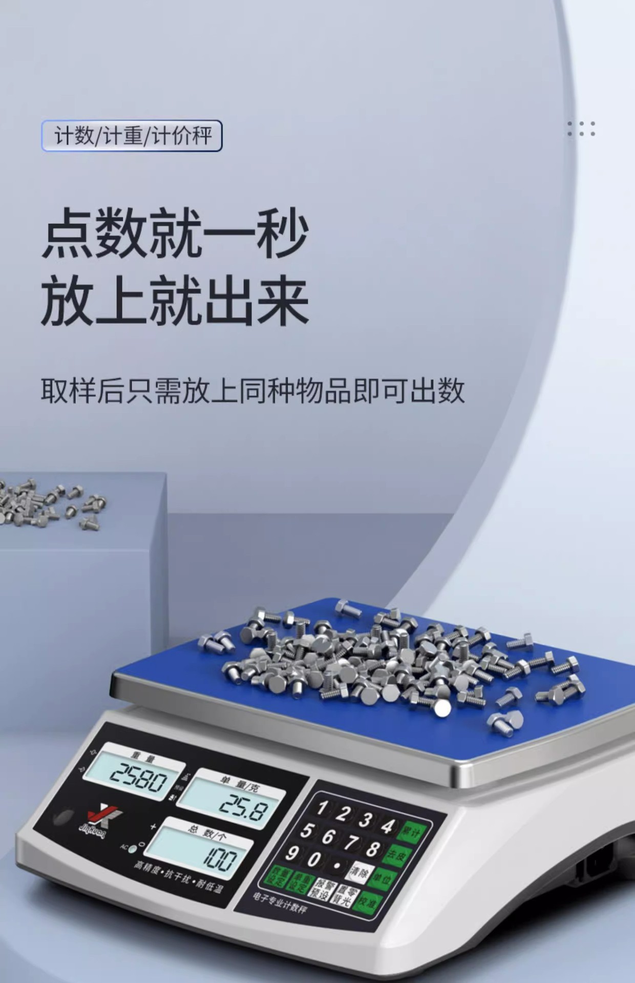 • 20kg/0.1g (3 개의 스크린) 100g 무게
