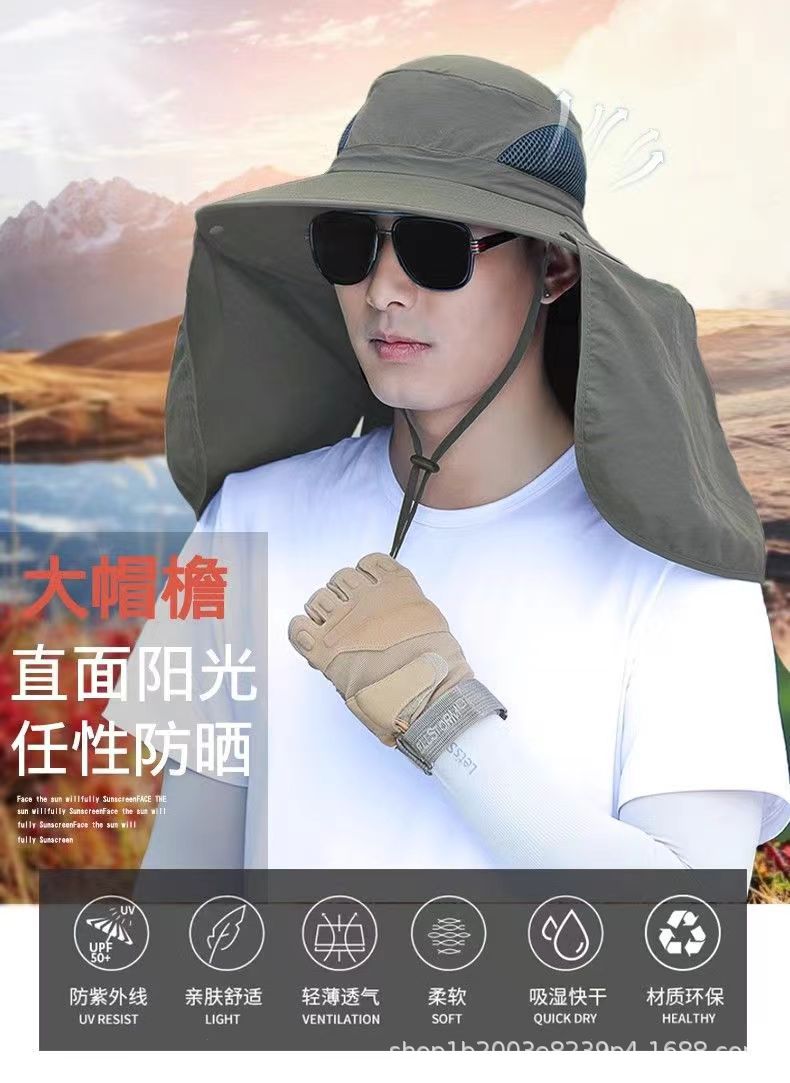 야외 태양 모자 UV 보호 태양 모자 어깨 패드 접이식 등산 낚시 모자 도매 어부 모자스토어 가기
