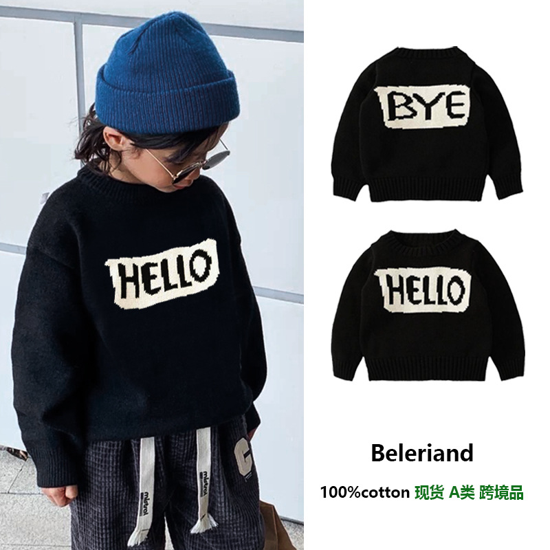 국경 간 아동복 스웨터 소년 니트 클래스 A 풀오버 크루 넥 단순 중소 어린이 면화 대외 무역 2024 년 가을스토어 가기