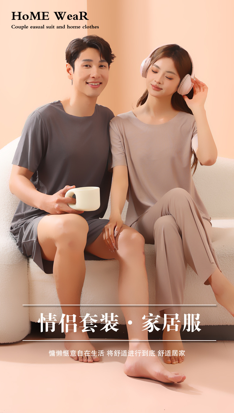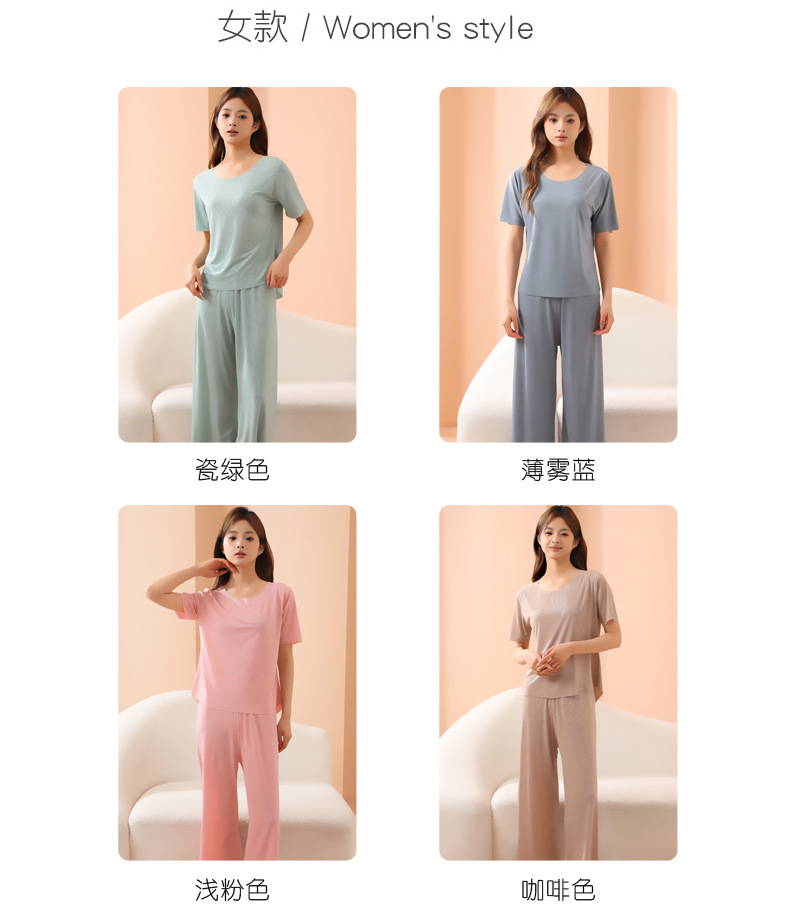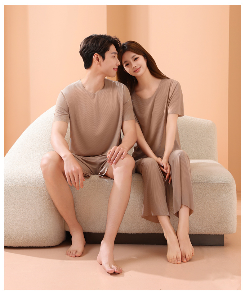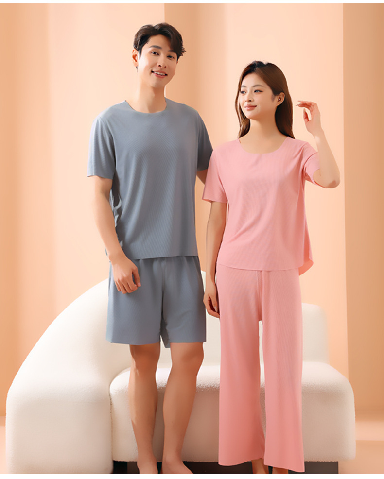 스레드 아이스 실크 홈 의류 커플 파자마 남성 봄과 여름 얇은 여성의 짧은 소매 세트 탄성 쿨 센스