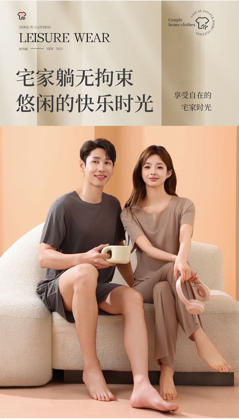 스레드 아이스 실크 홈 의류 커플 파자마 남성 봄과 여름 얇은 여성의 짧은 소매 세트 탄성 쿨 센스스토어 가기