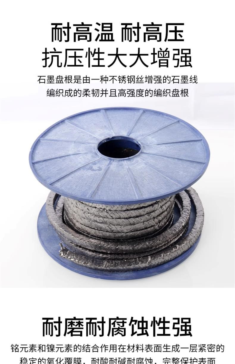 흑연 포장 고압 유연한 밀봉 가스켓 고온 저항 확장 니켈 와이어 강화 석면 스트립 밸브 충전 공장 핀스토어 가기