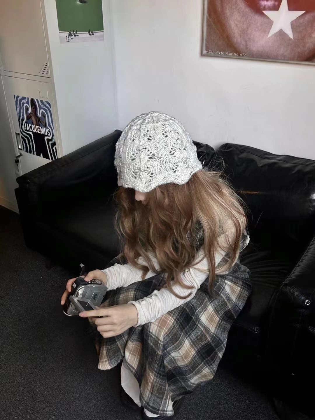 수제 니트 울 모자 어린이 봄과 가을 2024 새로운 따뜻한 양동이 모자 큰 머리 더미 차가운 모자스토어 가기