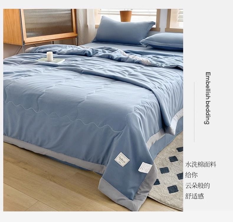 여름 솔리드 컬러 얇은 이불 싱글 더블 세척 가능한 면 여름 쿨 이불 에어컨 이불 코어 기계