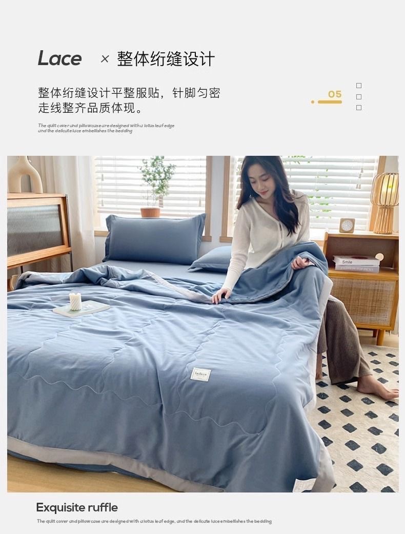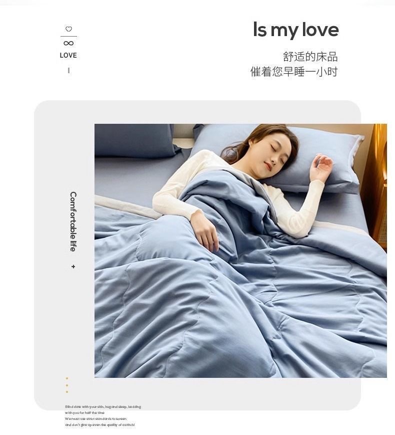 여름 솔리드 컬러 얇은 이불 싱글 더블 세척 가능한 면 여름 쿨 이불 에어컨 이불 코어 기계스토어 가기