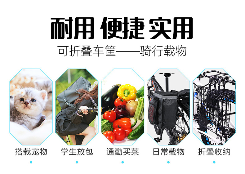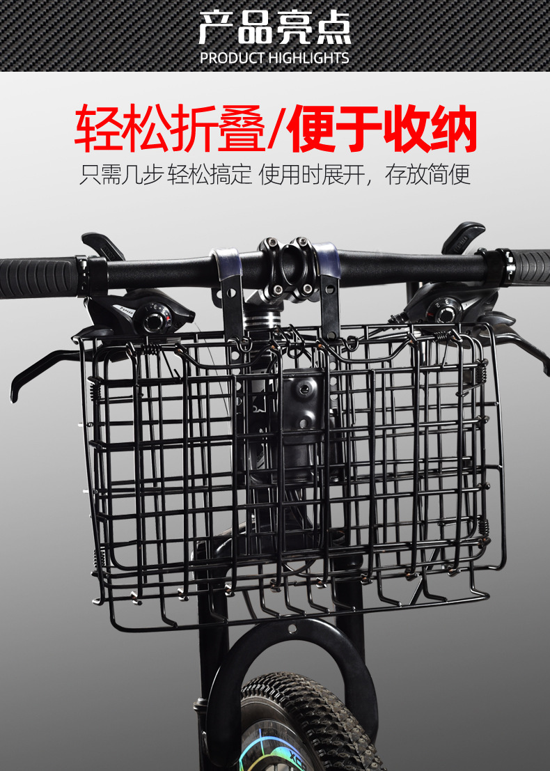 자전거 바구니 접이식 전면 트레일러 바구니 유니버설 전기 자동차 후면 프레임 산악 자전거 야채 바구니