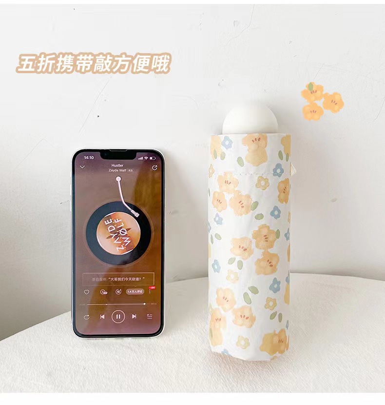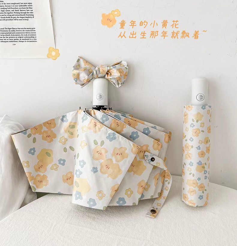 노란 꽃 우산 여성의 맑고 비오는 이중 목적 자동 태양 우산 태양 보호 UV 보호 Ins 작은 검은 색 접착제 햇빛 우산