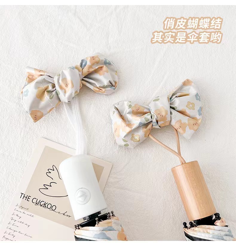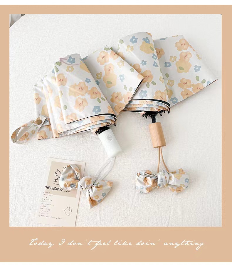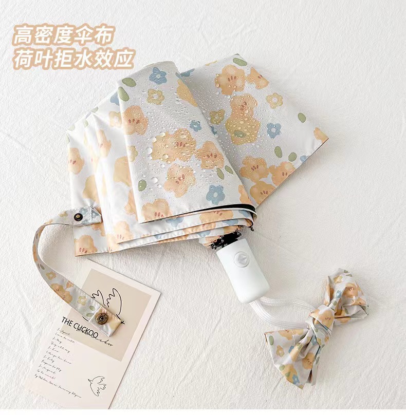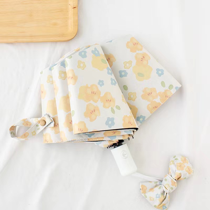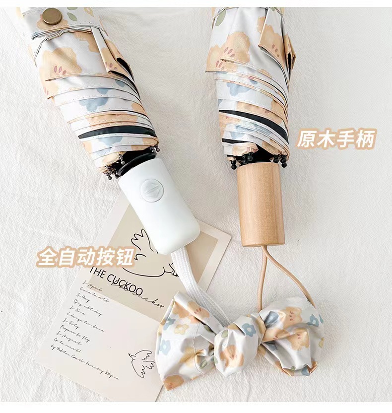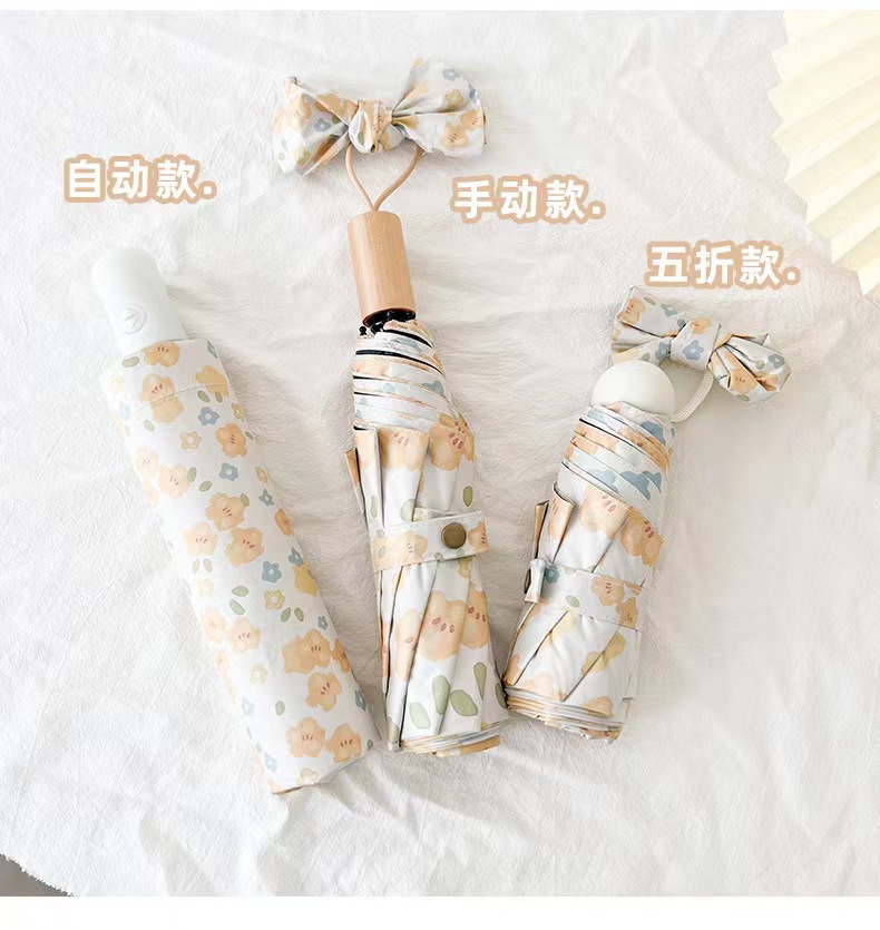 노란 꽃 우산 여성의 맑고 비오는 이중 목적 자동 태양 우산 태양 보호 UV 보호 Ins 작은 검은 색 접착제 햇빛 우산스토어 가기