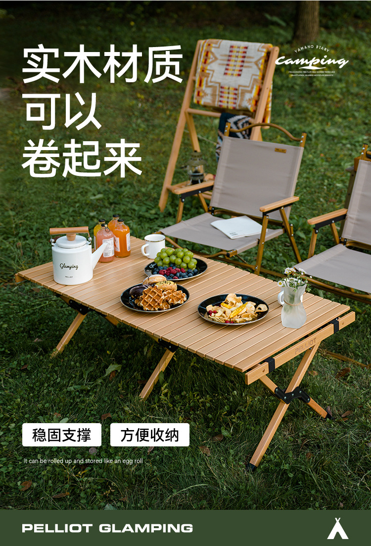 베델 단단한 나무 계란 롤 테이블 너도밤 야외 캠핑 휴대용 접이식 테이블 저장 테이블 홈 여행 식탁 야생스토어 가기