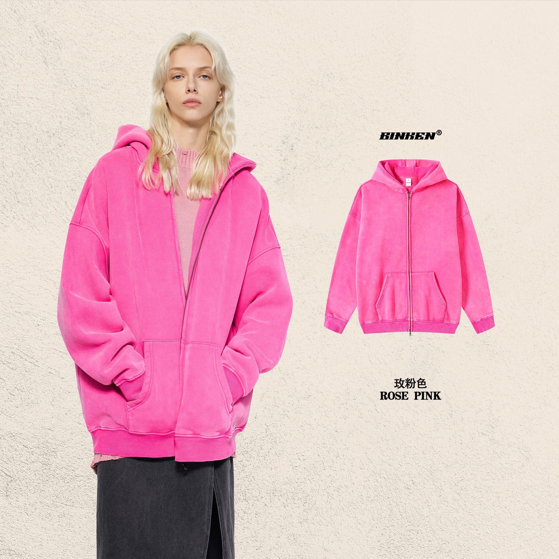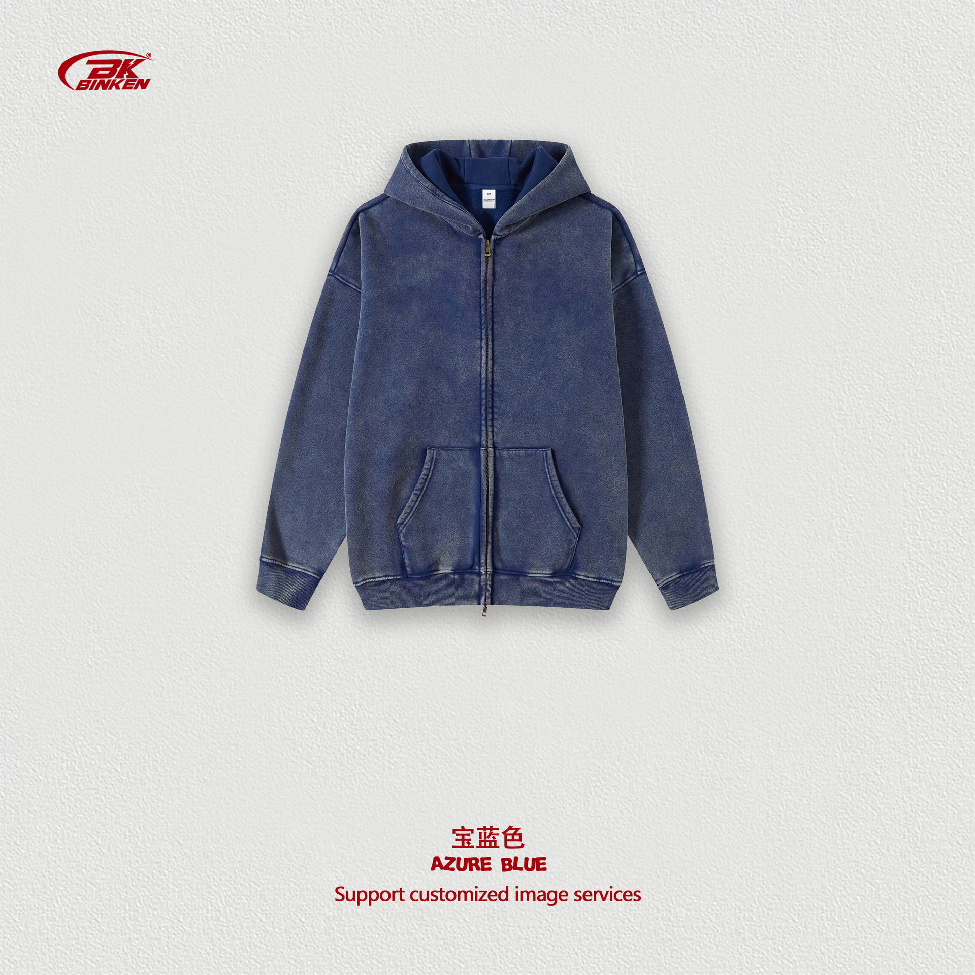 BK 남성용 360g 워싱 디스트레스드 아메리칸 스타일 지퍼 스웨트셔츠 남성용 솔리드 컬러 재킷 가을, 겨울 벨벳 두꺼운 후드 스웨트셔츠스토어 가기