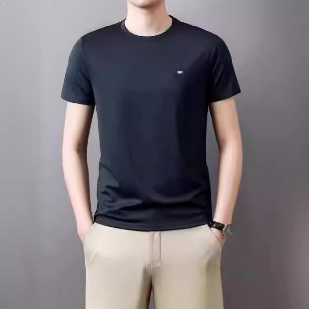 뽕나무 실크 둥근 목 빠른 건조 반소매 티셔츠 남성 여름 얇은 통기성 아이스 실크 스킨 친화적 인 둥근 목 반팔 남성스토어 가기