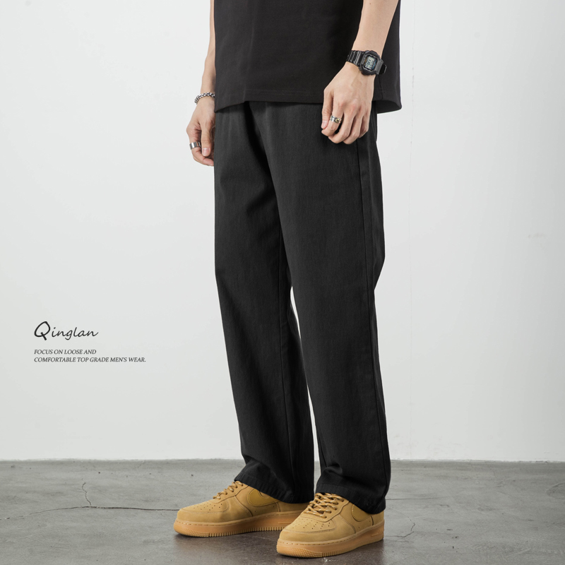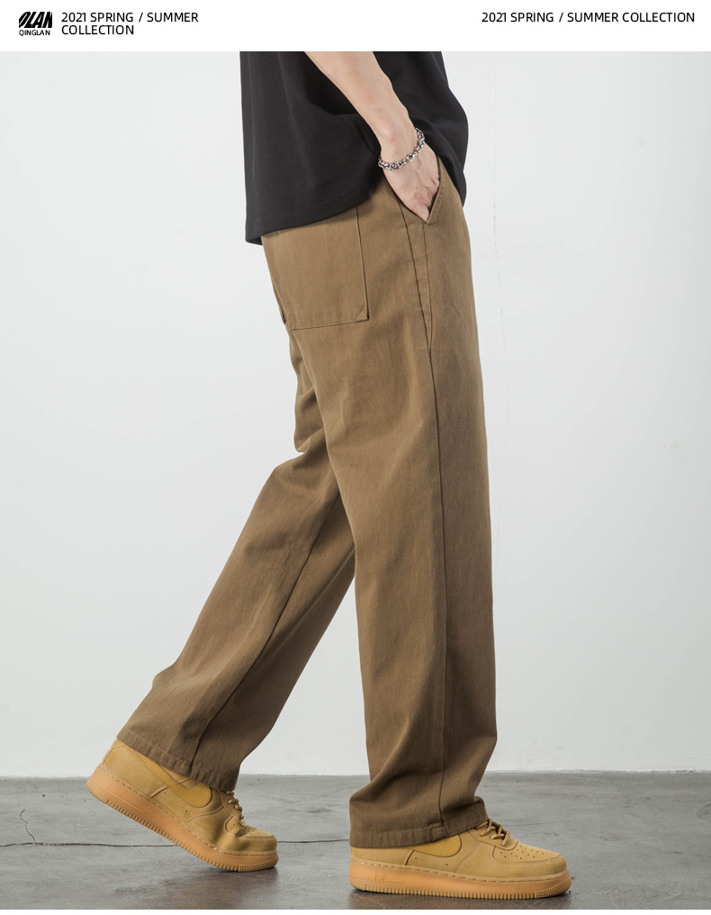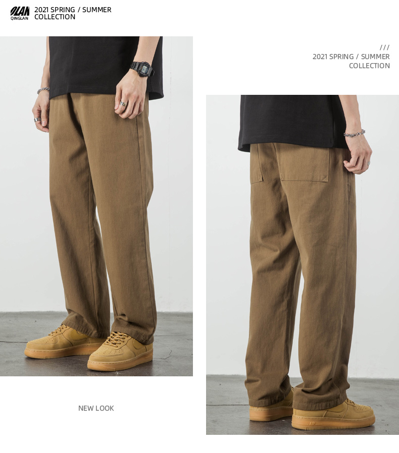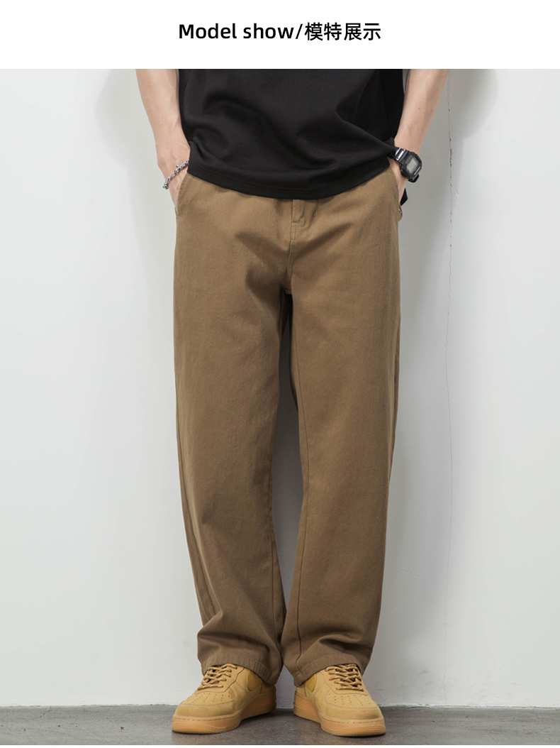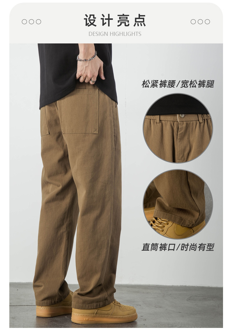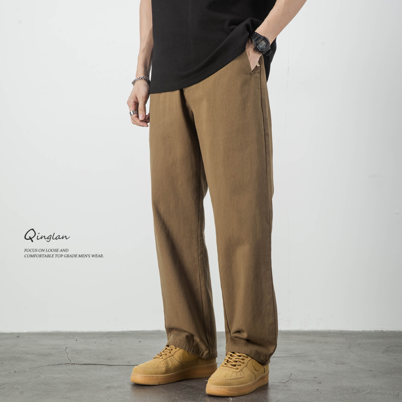 카키색 바지 남성용 스트레이트 루즈핏 캐주얼 롱팬츠 남성용 대형 사이즈 순면 트렌디 다용도 와이드 팬츠 가을 신상