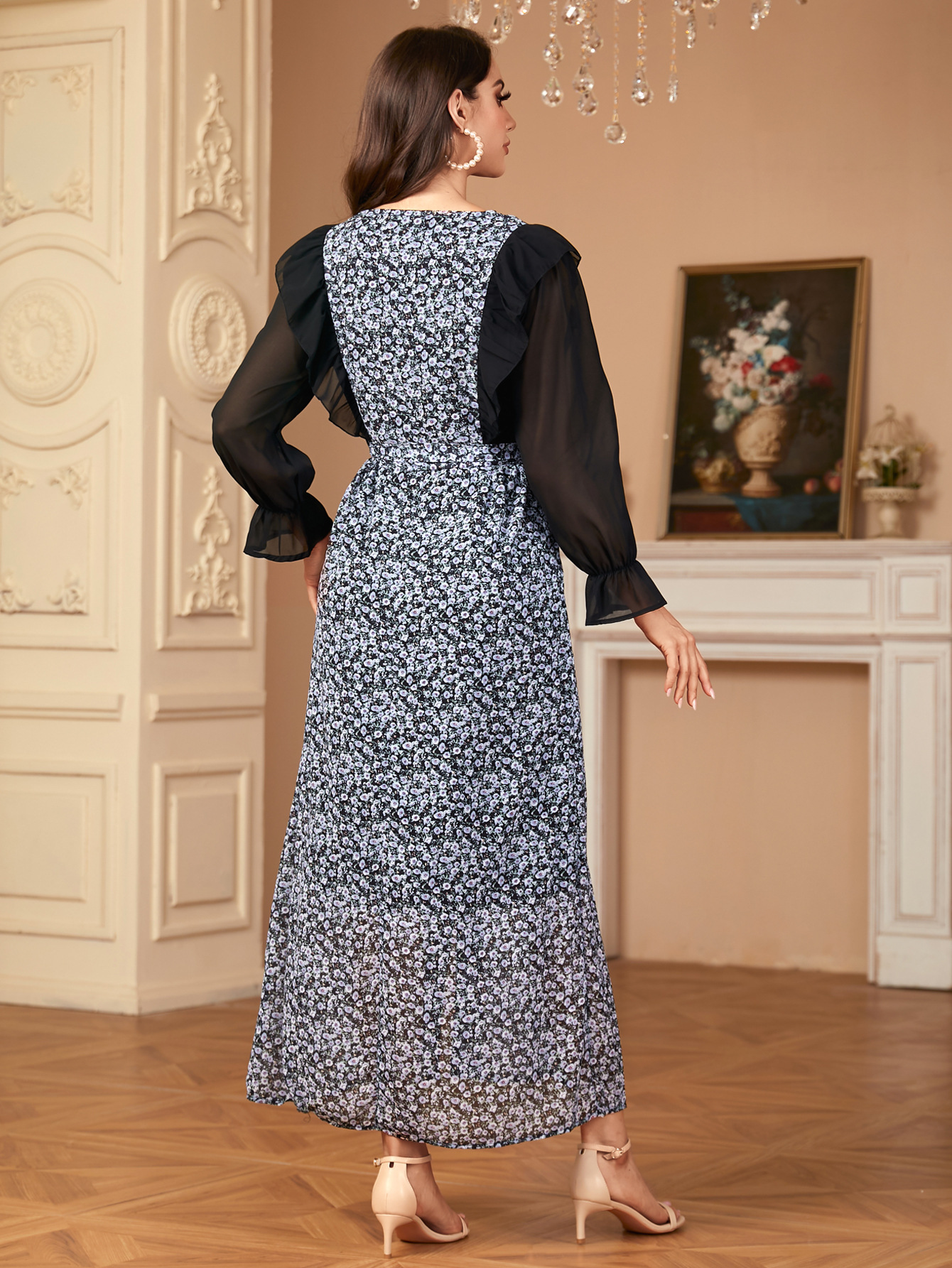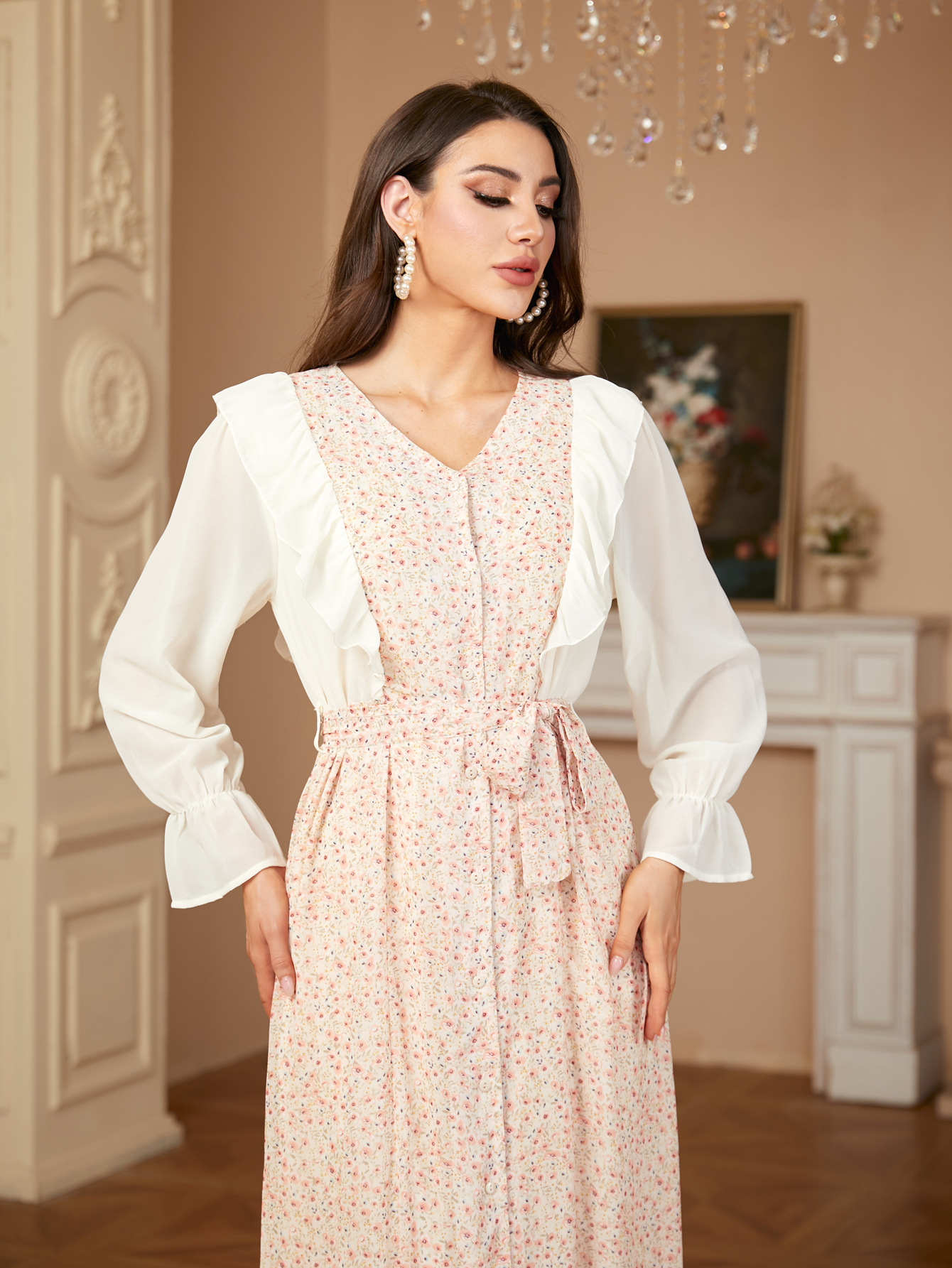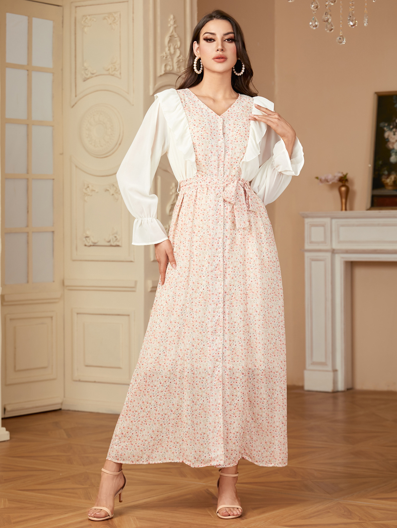 A1505 국경 중동 유럽과 미국 두바이 여성의 우아한 시폰 인쇄 카디건 원피스 원피스스토어 가기