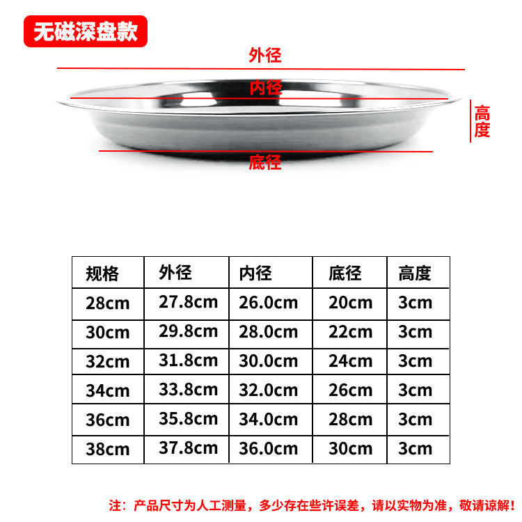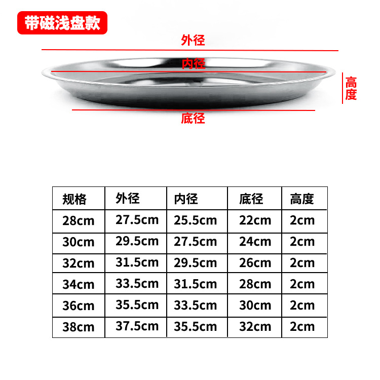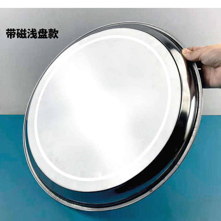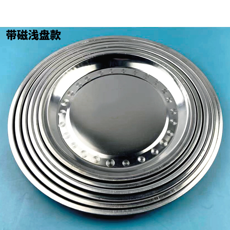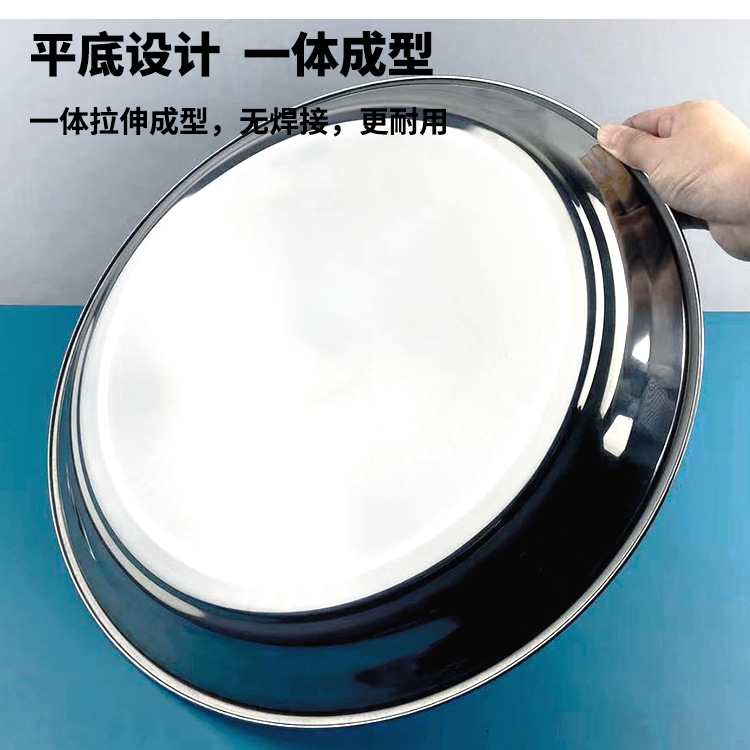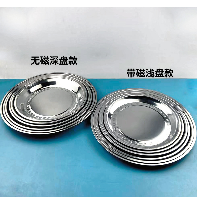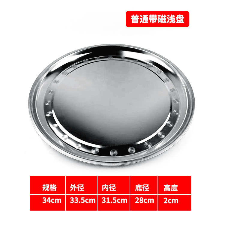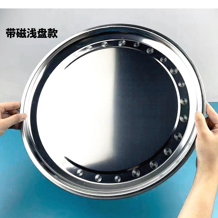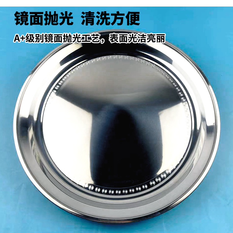 두꺼운 스테인레스 스틸 플레이트 라운드 대형 플레이트 플랫 하단 얕은 티 컵 트레이 레스토랑 호텔 식사 생선 플레이트 빠른 신제품