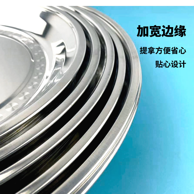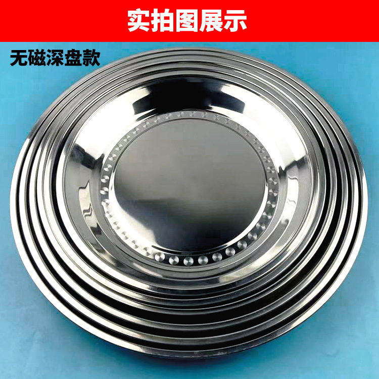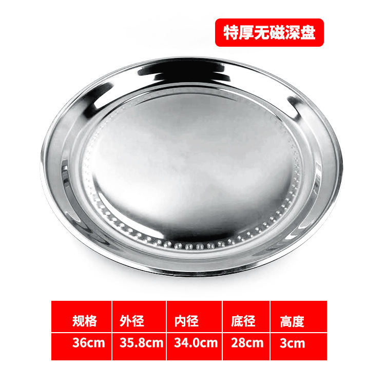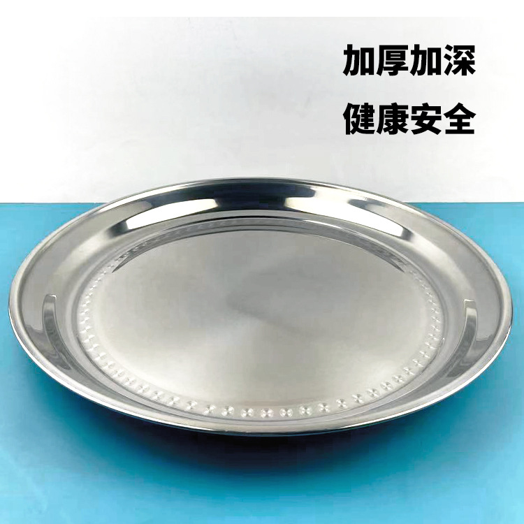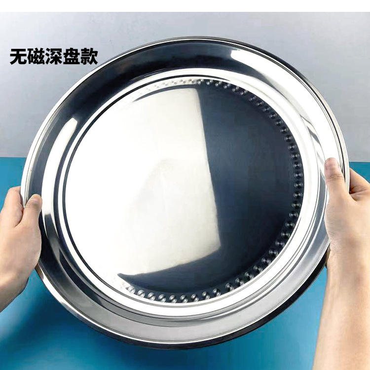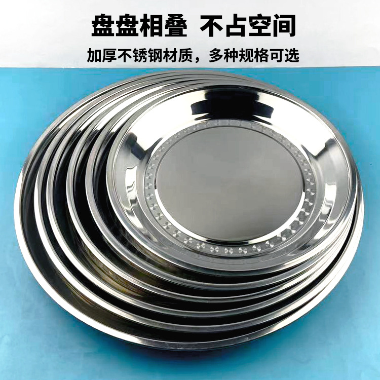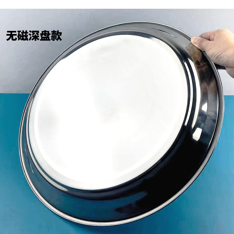 두꺼운 스테인레스 스틸 플레이트 라운드 대형 플레이트 플랫 하단 얕은 티 컵 트레이 레스토랑 호텔 식사 생선 플레이트 빠른 신제품스토어 가기