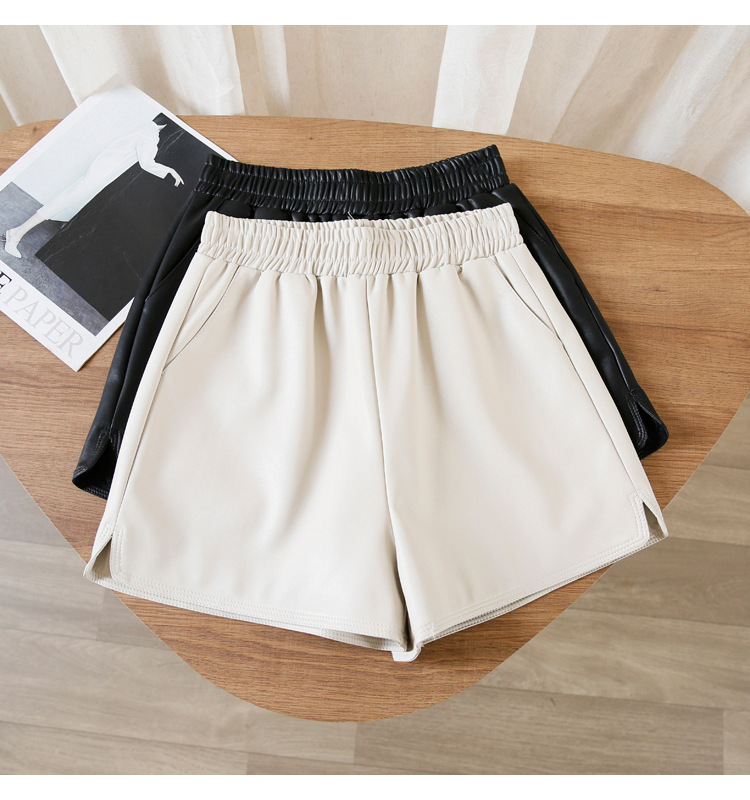 가죽 넓은 다리 여성의 외부 착용 가을 및 겨울 부트 바지 모든 경기 높은 허리 슬리밍 느슨한 새로운 PU 스타일러스 스타일리쉬 반바지스토어 가기