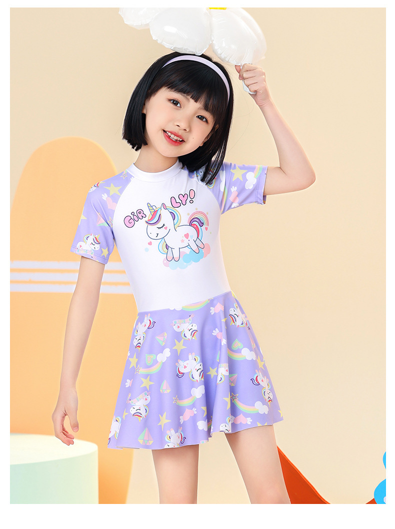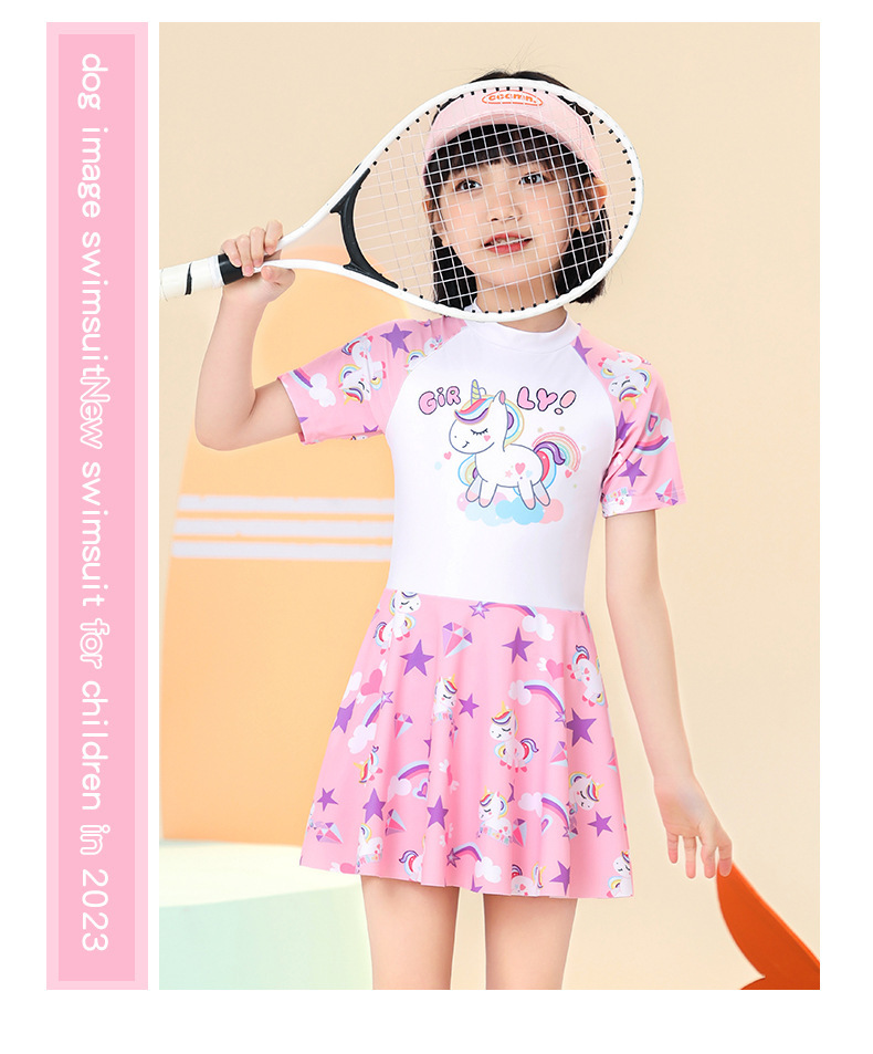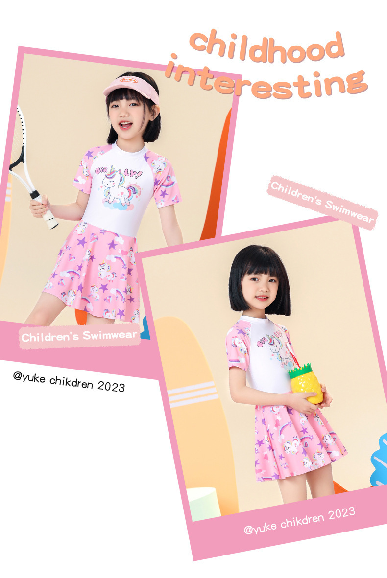 2024 년 새 어린이 수영복 여자 시오마틱 스커트 수영복 여름 주니어 중견 여자 훈련 수영