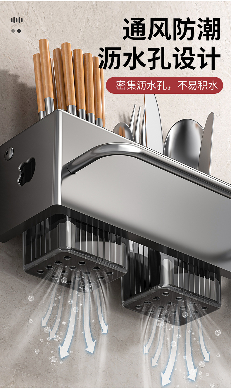 흔적 없는 벽걸이형 칼꽂이, 젓가락통, 주방 다기능 수납선반, 주방용품 수납선반, 못 없이 벽에 부착 가능
