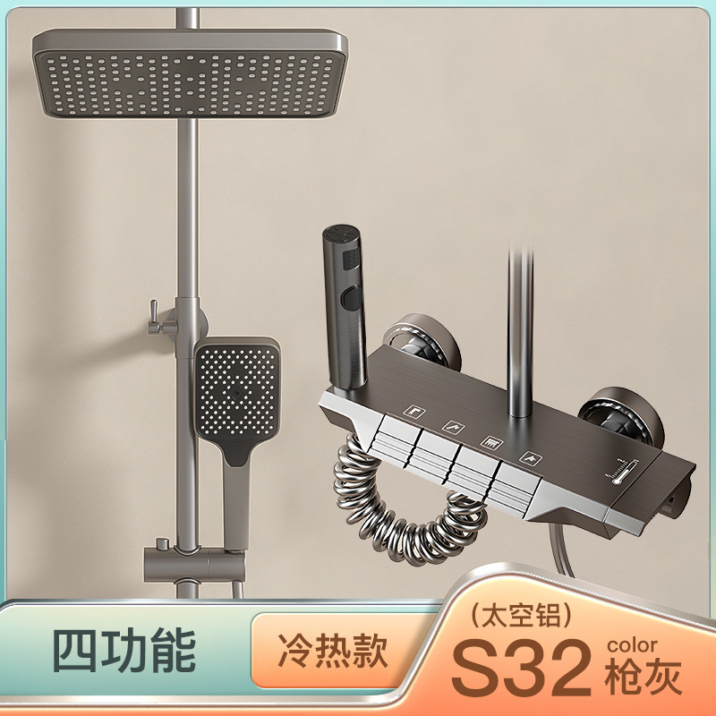 샤워 세트 총 회색 황동 샤워 가정용 온도 조절 식 스프링클러 욕실 샤워 샤워