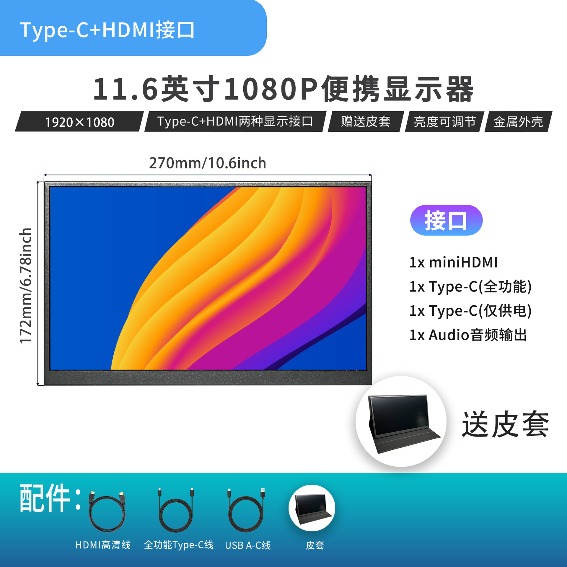 11.6 "1080P 휴대용 디스플레이 휴대 전화 화면 노트북 외부 PS4 HD LCD 확장 화면