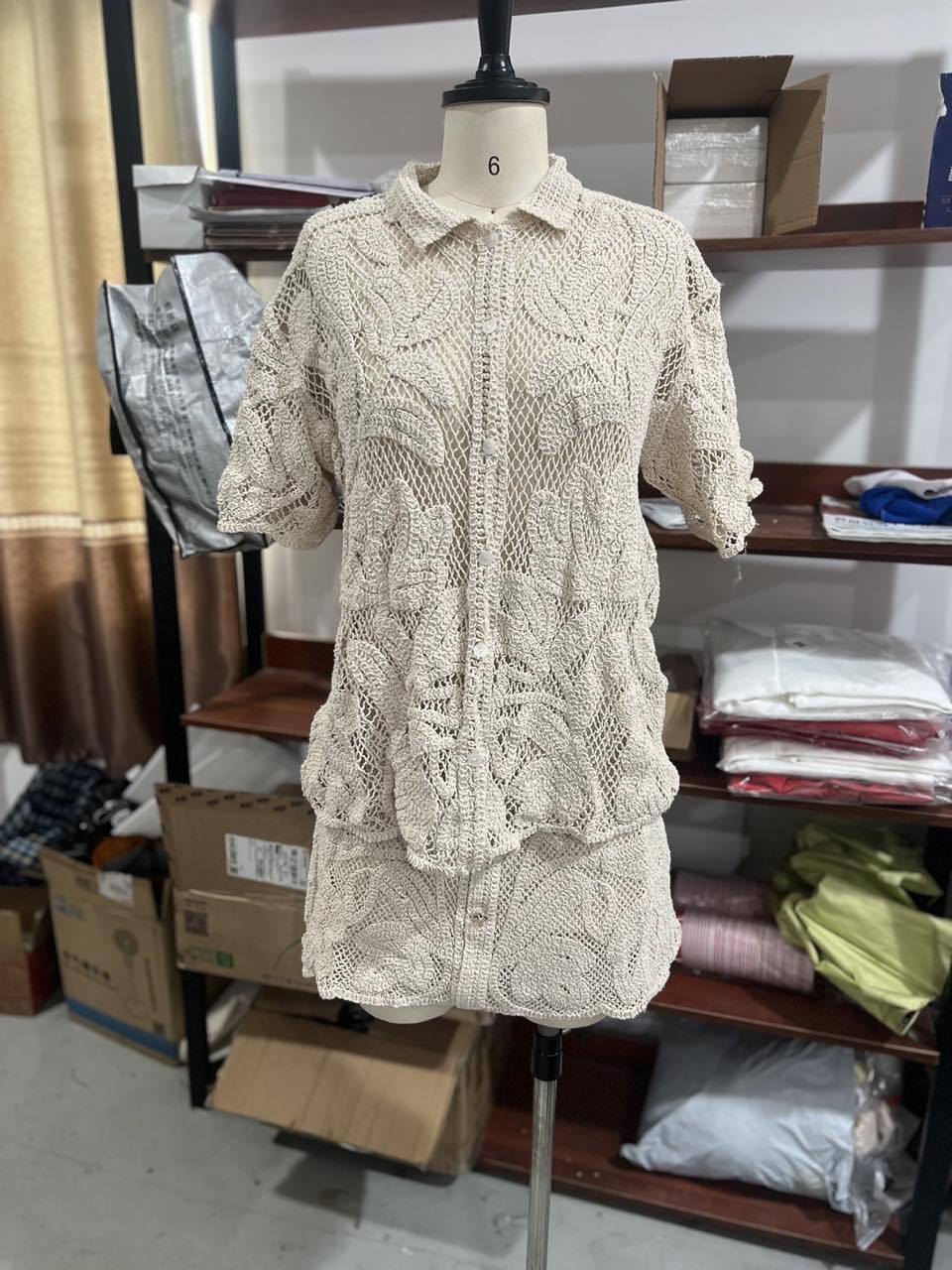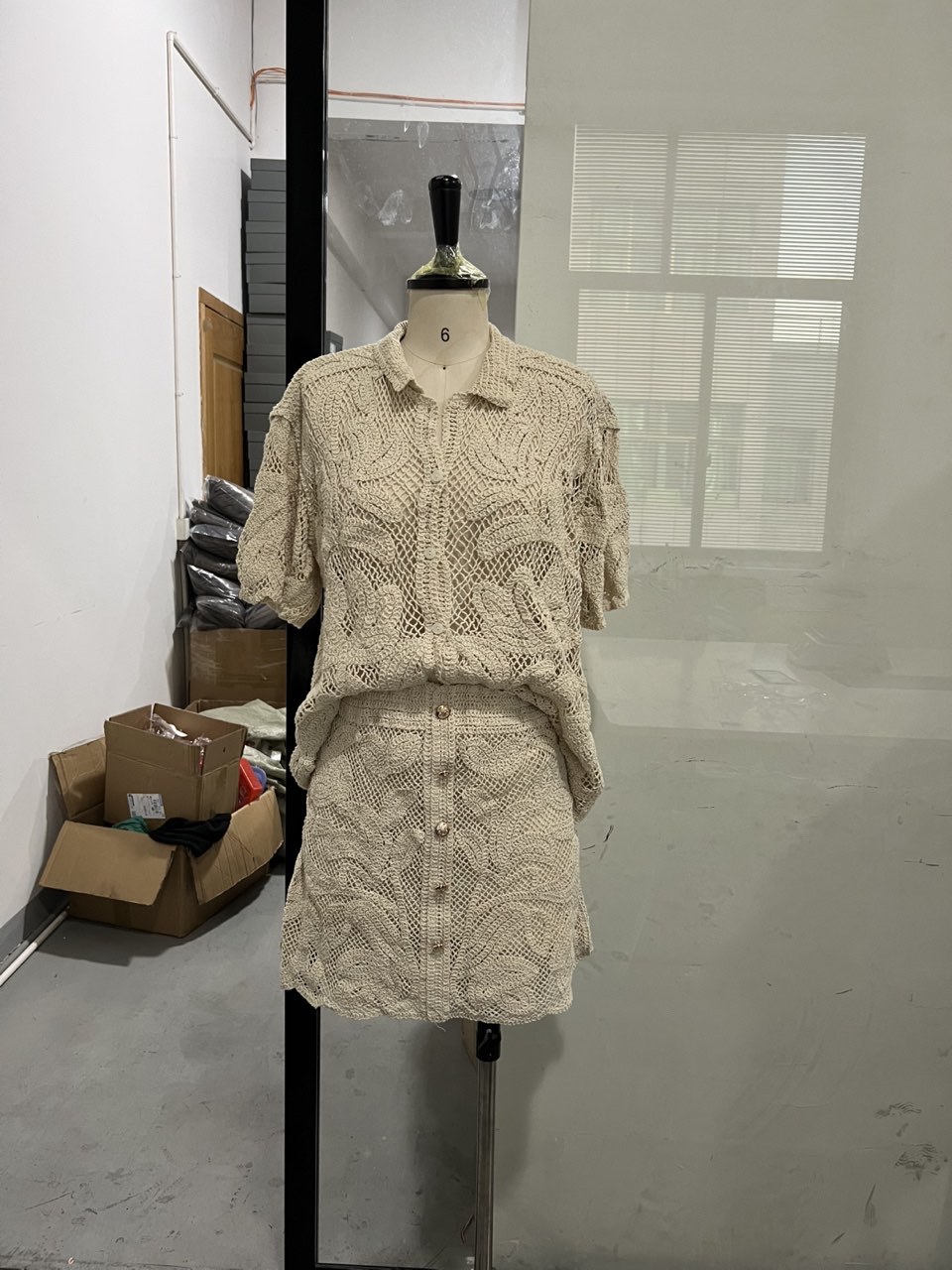 유럽과 미국 국경 2024 봄과 여름 여성 패션 캐주얼 세트 개성 스트리트 패션 속이 빈 여성의 미니 스커트 세트
