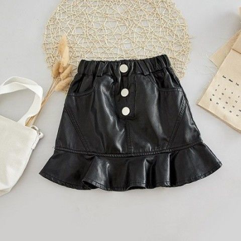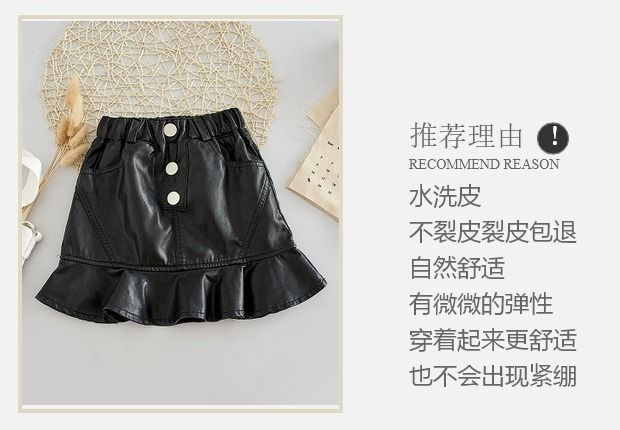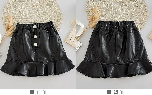 한국식 아동복 가을과 겨울 새 여아 가죽 스커트 어린이 짧은 치마 PU 가죽 피쉬 미들 중 · 큰 여자 힙합 스커트