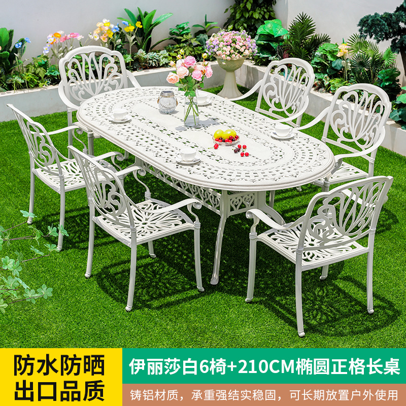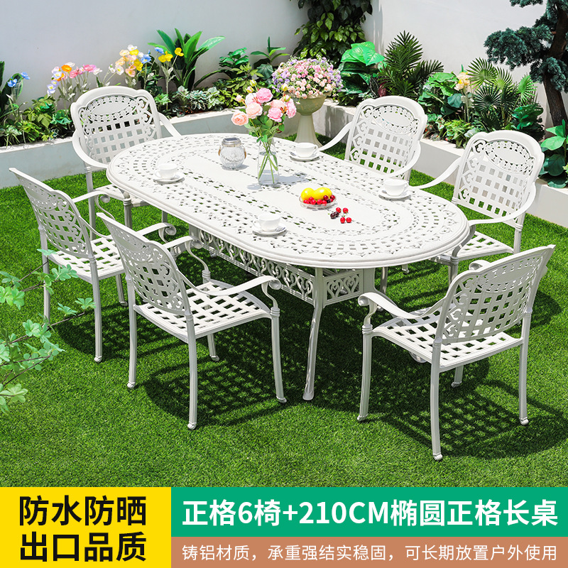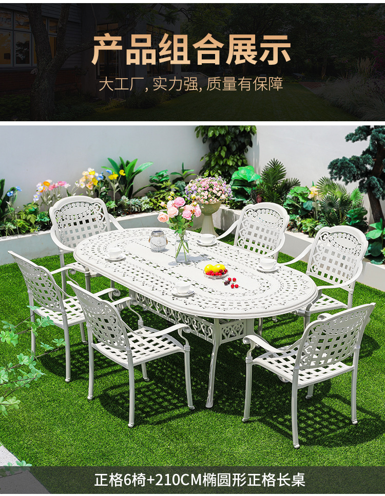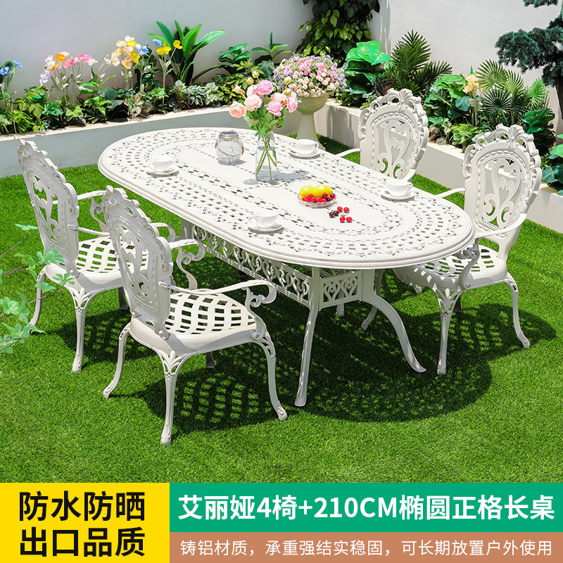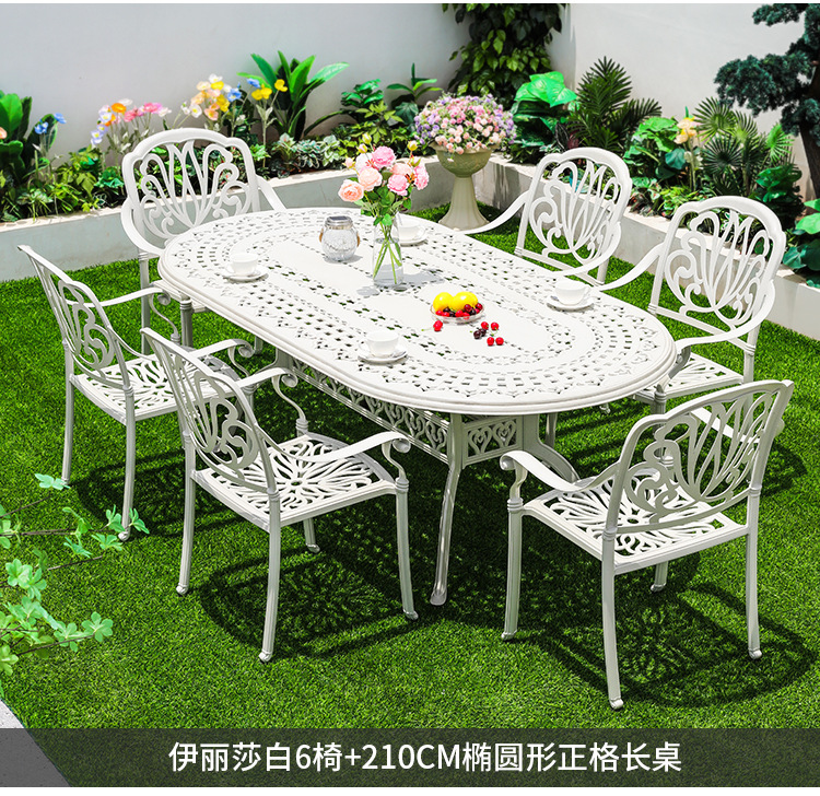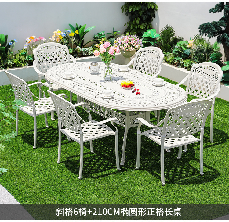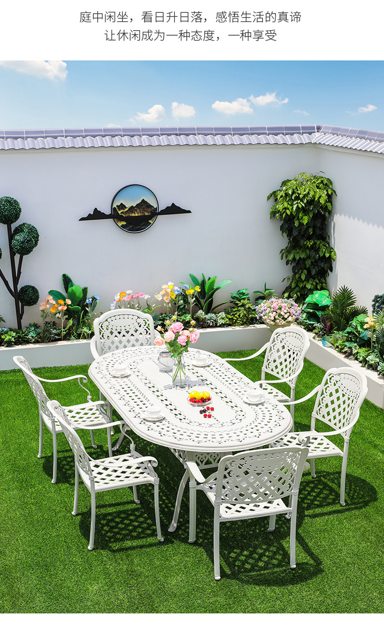 야외 테이블 및 의자 타원형 주조 알루미늄 테이블 및 의자 정원 안뜰 캐주얼 간단한 외부 식사 테이블 및 의자 야외 테이블 및 의자스토어 가기