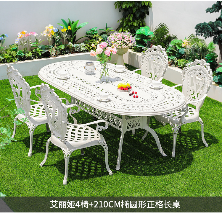 야외 테이블 및 의자 타원형 주조 알루미늄 테이블 및 의자 정원 안뜰 캐주얼 간단한 외부 식사 테이블 및 의자 야외 테이블 및 의자
