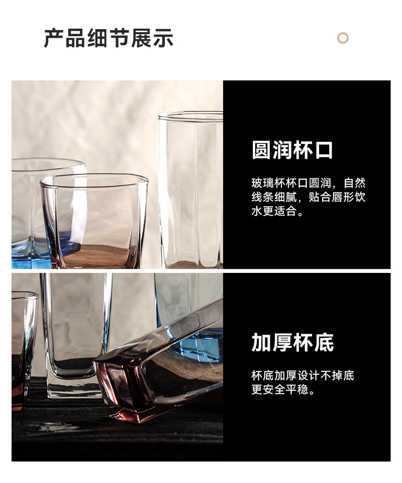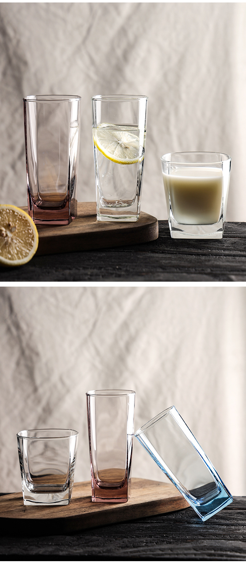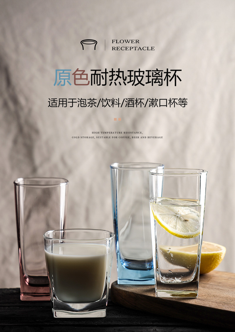 다채로운 유리 컵 마시는 컵 내열성 거품 차 컵 과일 주스 컵 우유 컵 호텔 사각 양치질 컵 도매