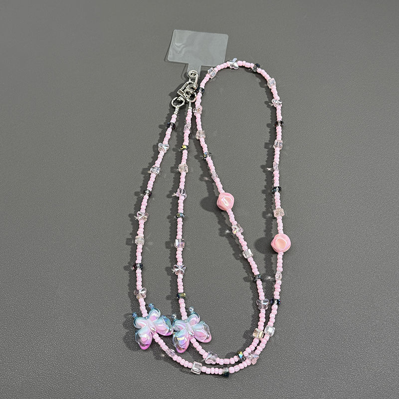 • 핑크 구슬 문자열 색상 나비 크로스 체인 카드