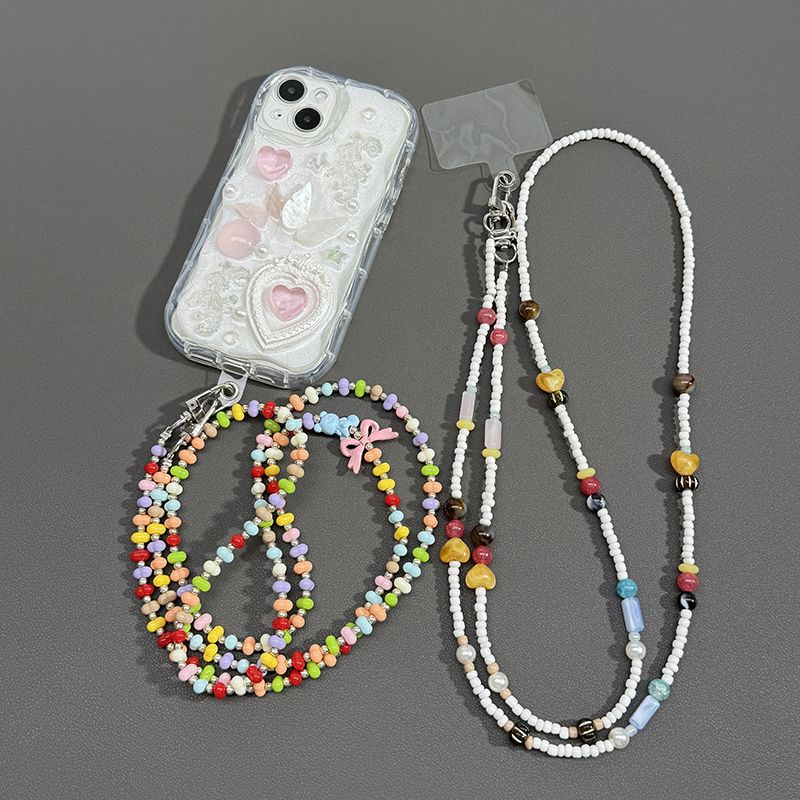 도파민 인 활 다채로운 진주 구슬 매달려 체인 휴대 전화 끈 크로스 바디 스트랩 CCD스토어 가기