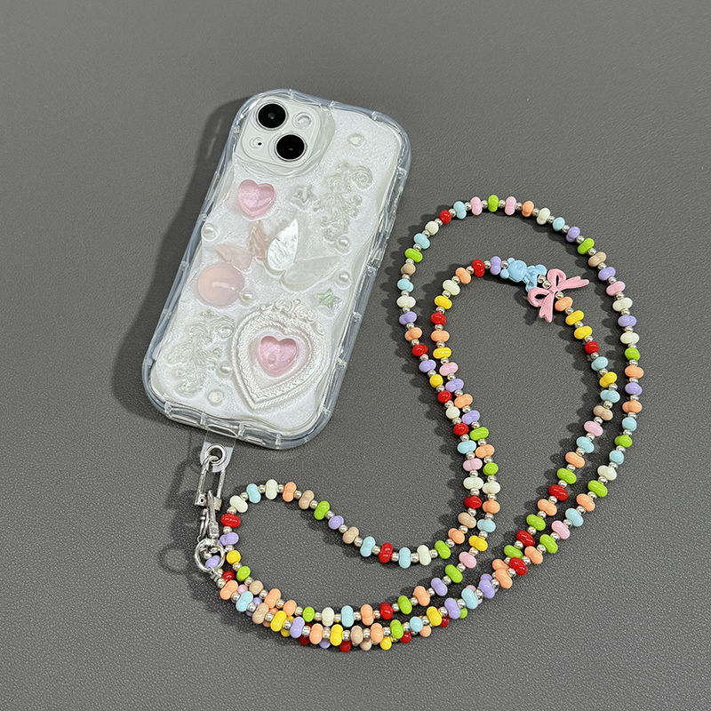 도파민 인 활 다채로운 진주 구슬 매달려 체인 휴대 전화 끈 크로스 바디 스트랩 CCD