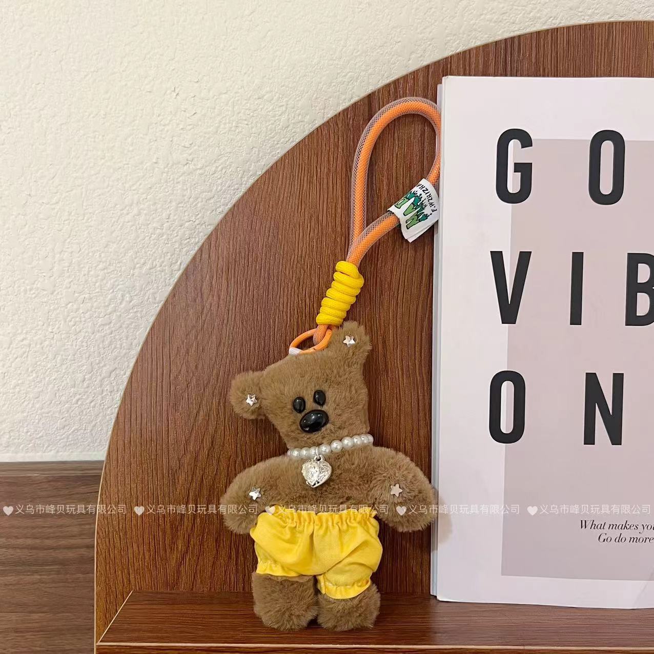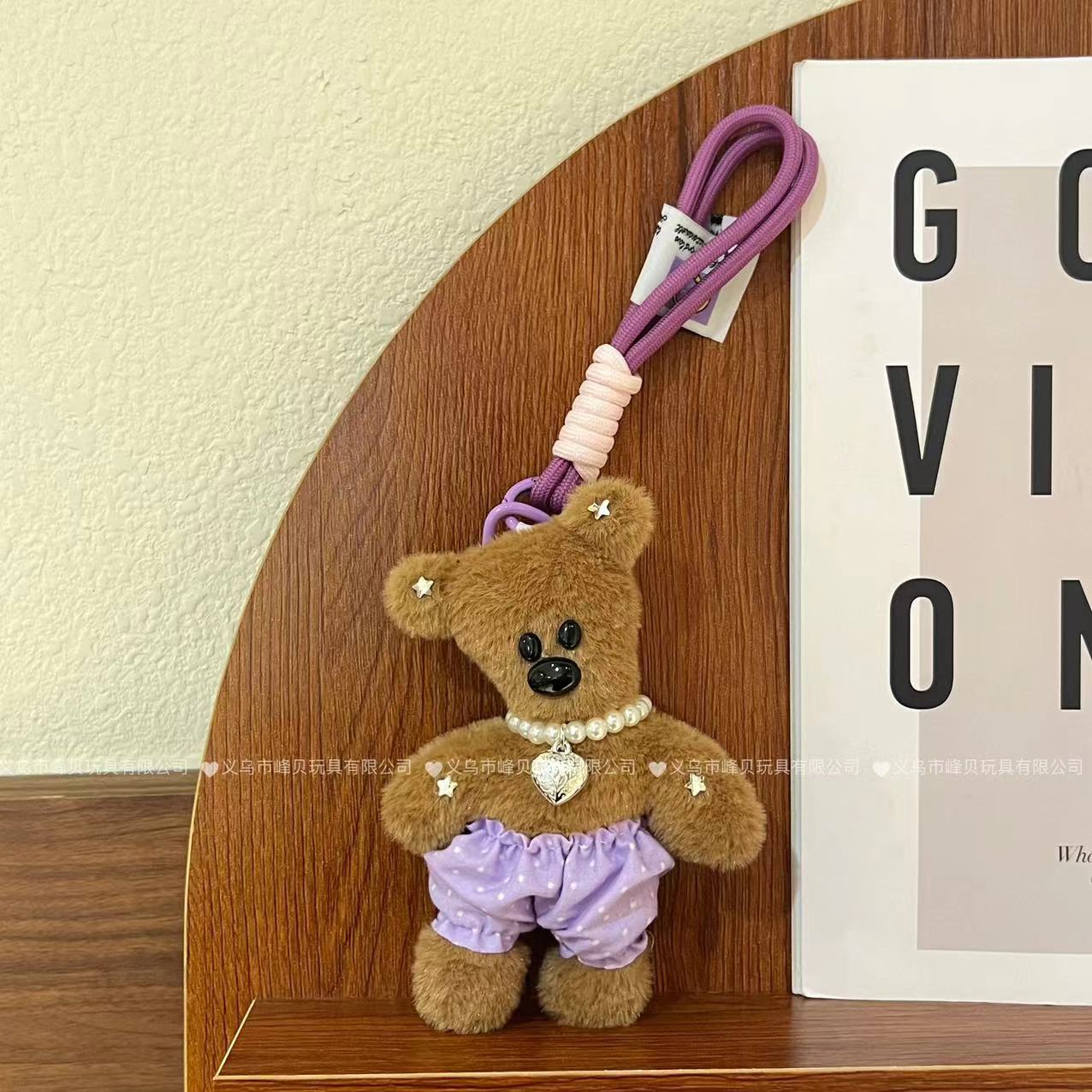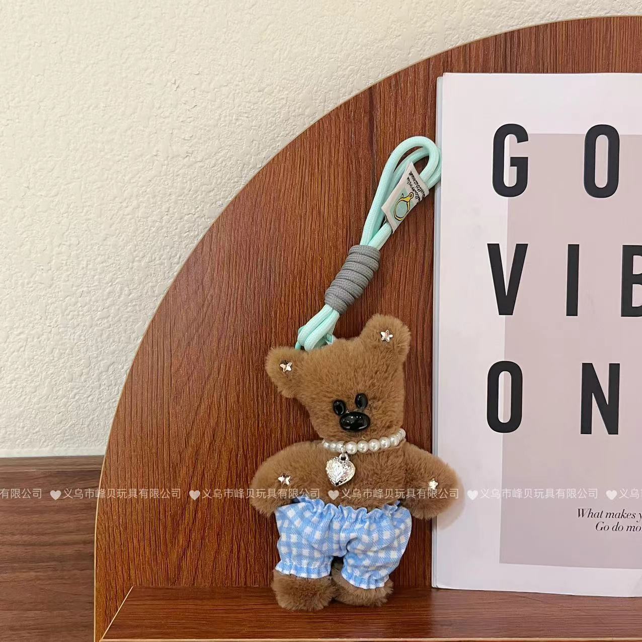 새로운 비뚤어진 머리 귀여운 Maillard Bean Bear Plush 자동차 키 체인 가방 펜던트 봉제 테디 베어 장식품스토어 가기