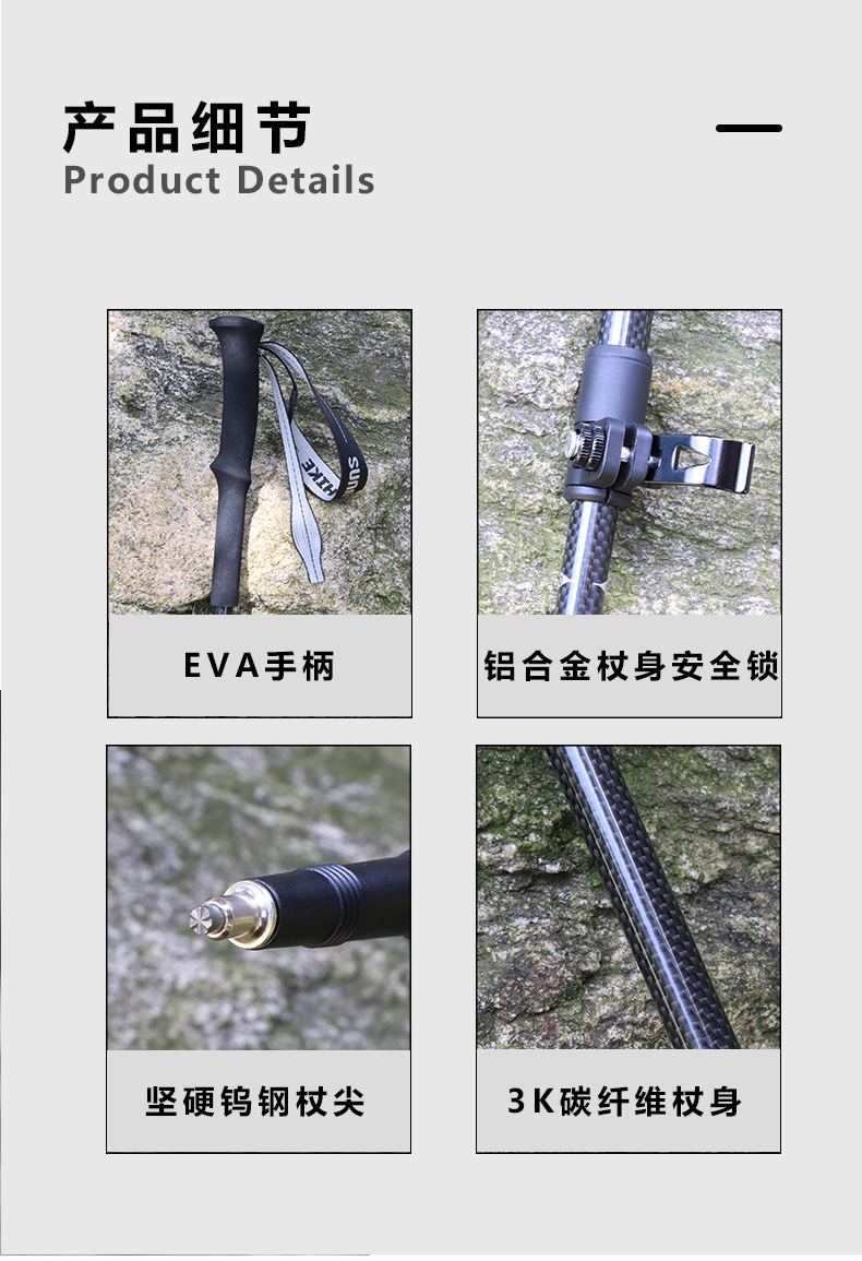 3K 탄소 섬유 트레킹 폴 등산 지팡이 탄소 3 섹션 초경량 텔레스코픽 폴 야외 하이킹 장비스토어 가기