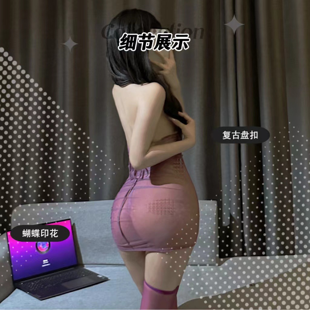 레트로 나비 인쇄 청삼 섹스 속옷 순수한 욕망 스타일 보라색 매력 초박형 관점 청삼 원피스 8058스토어 가기
