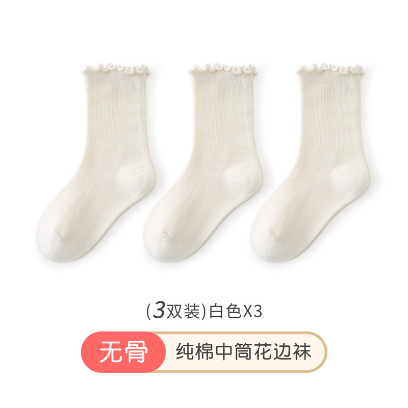 소녀 흰 양말 봄 가을과 겨울 중간 튜브 양말 레이스 코튼 양말 포장 어린이 공주 양말 소녀 스타킹 가을