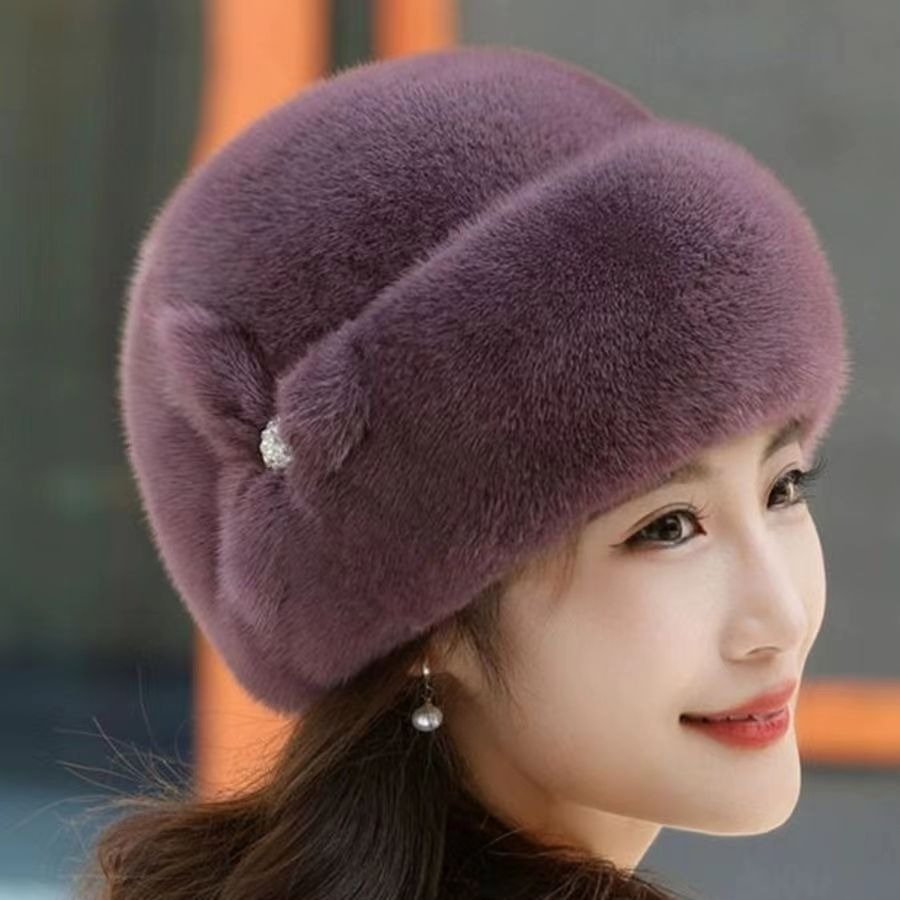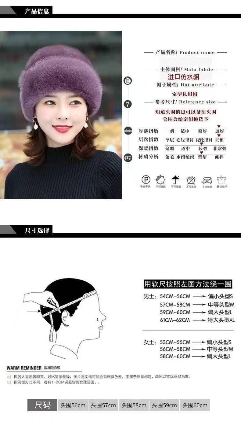 새로운 스타일 어머니 모자 여성의 겨울 모방 밍크 모피 토퍼 모자 패션 가죽 따뜻한 모자 중년 및 노인 모피 가방 헤드 모자 트렌드